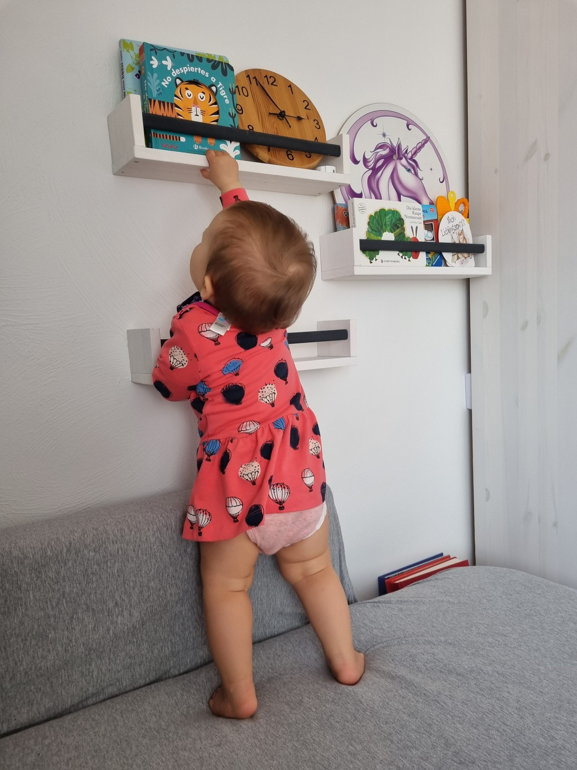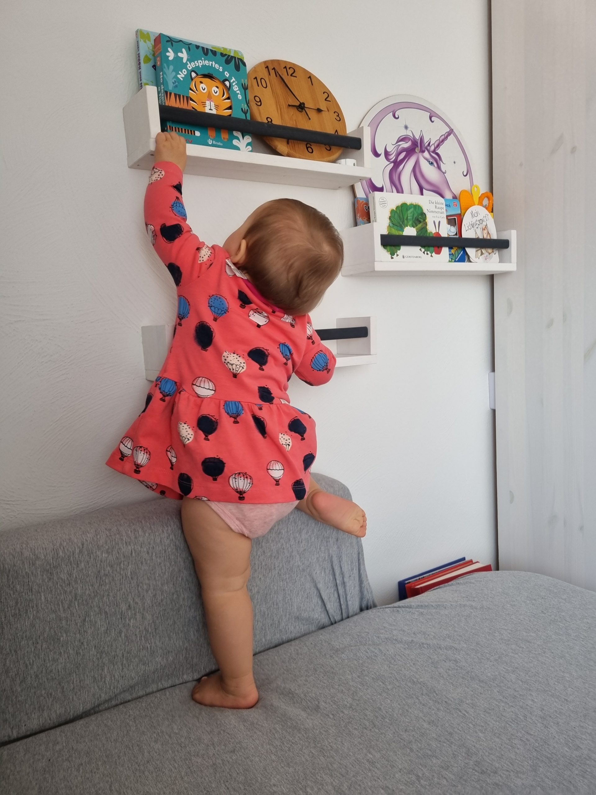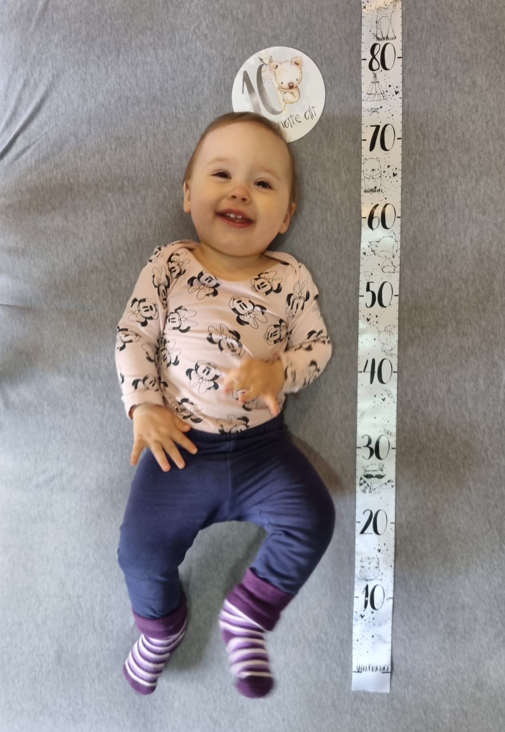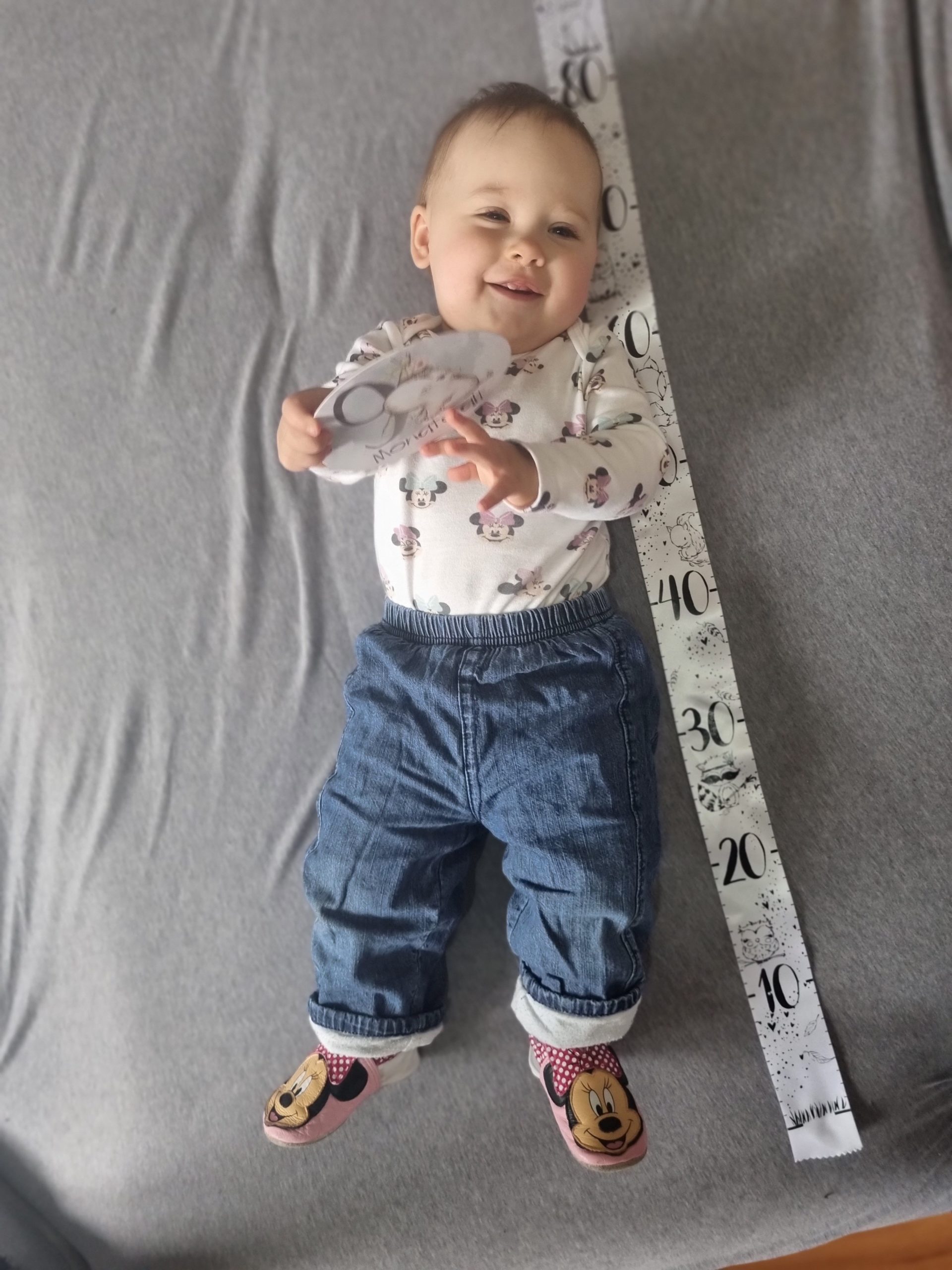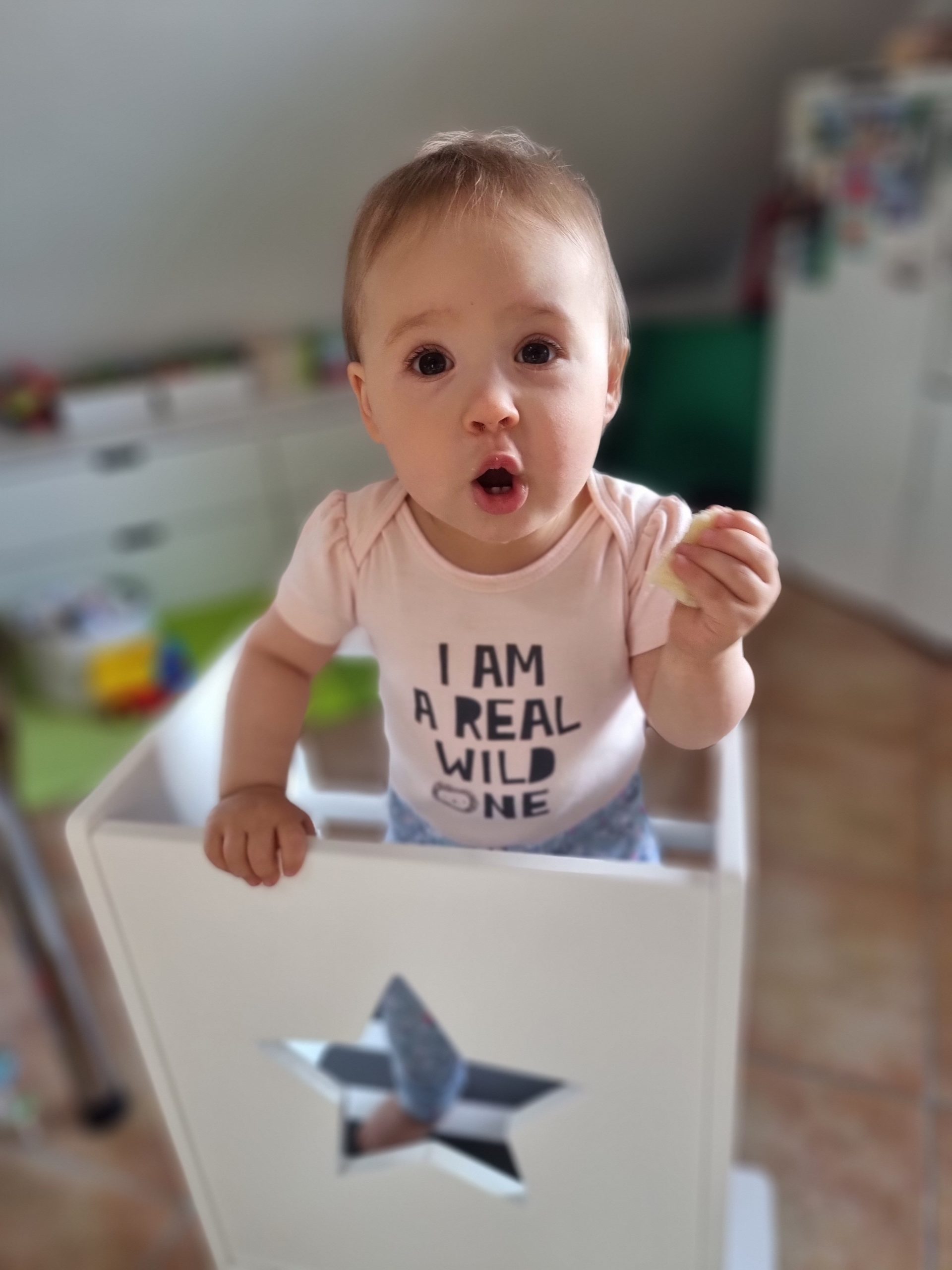 Im letzten Monat habe ich einen riesigen Entwicklungssprung gemacht. Ich krabble und laufe (an der Hand) nun überall hin und entdecke immer neue Ecken, – auch die, die Mama und Papa mir lieber nicht zeigen wollten. Mein Lieblingsspiel ist Fangen spielen, da kann ich mich so richtig bei austoben. Tatsächlich habe ich dadurch auch schon einiges von meinem Babyspeck verloren.