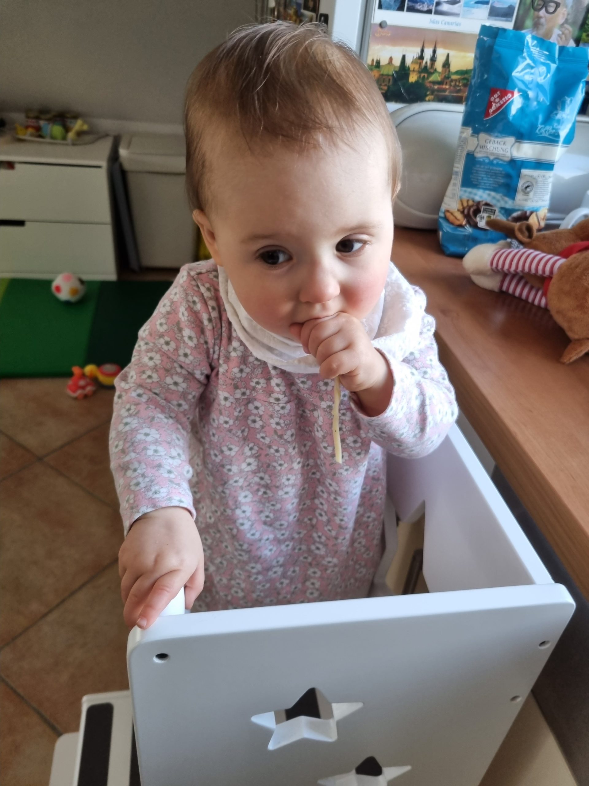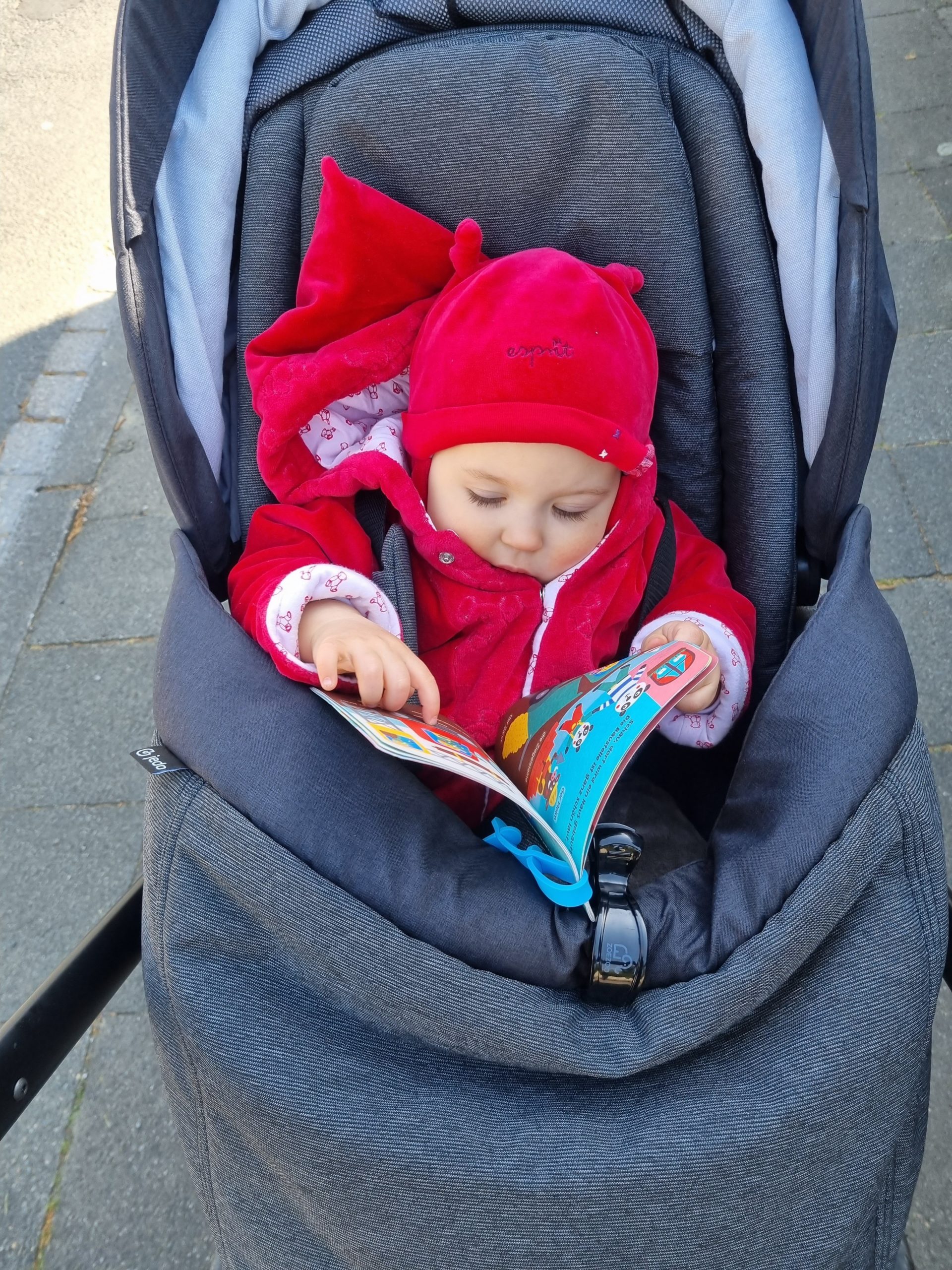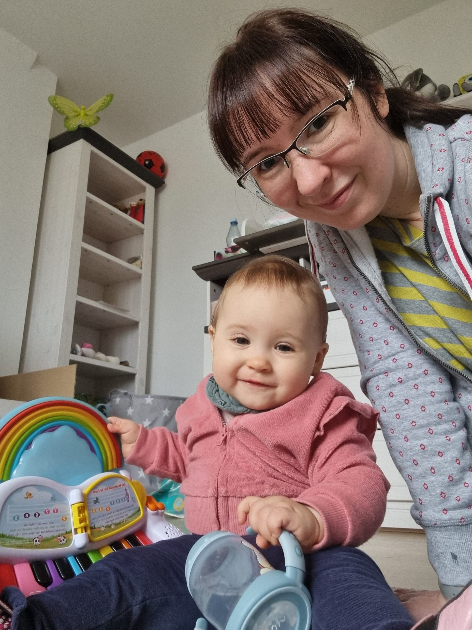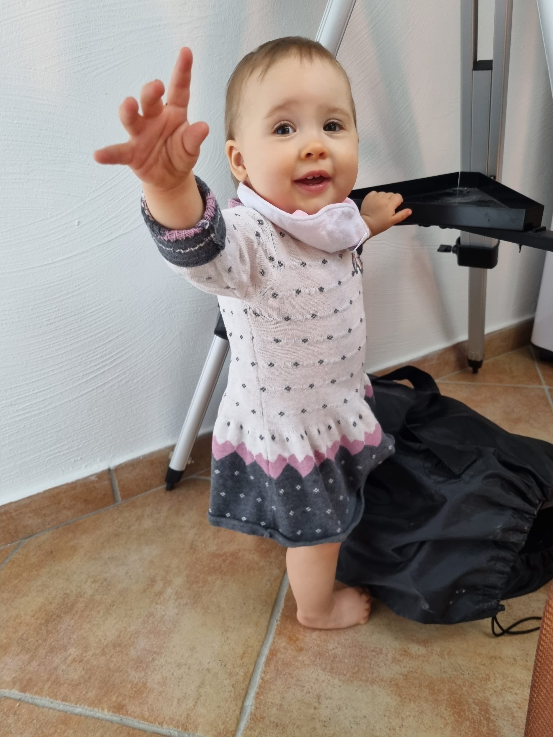 Weil ich nicht an mehreren Baustellen gleichzeitig arbeiten kann, ist mein Wortschatz weiterhin beschränkt auf „da“, „da-da“ und „Mama“. Aber meistens versteht meine Mama mich auch ohne Worte🥰