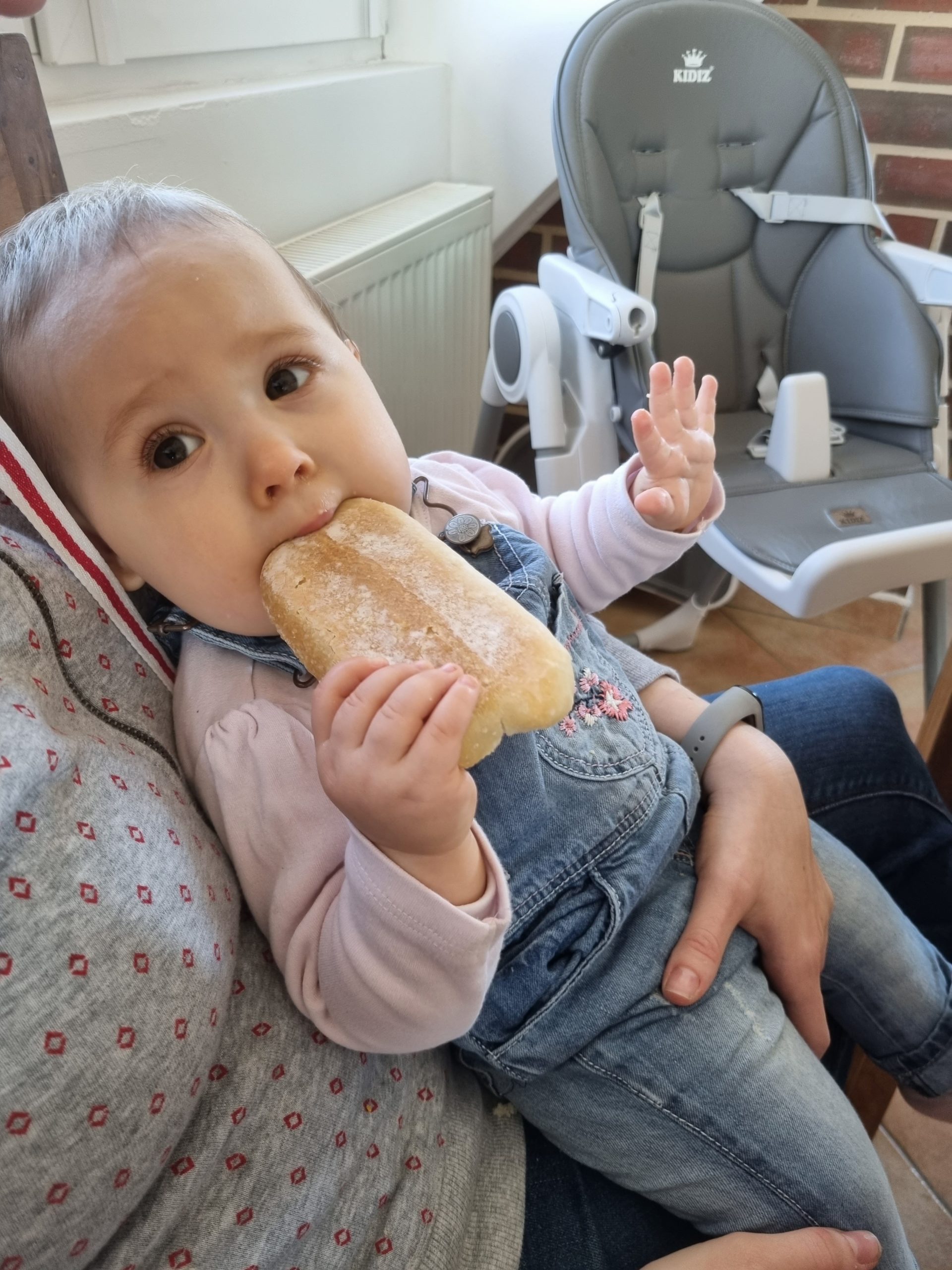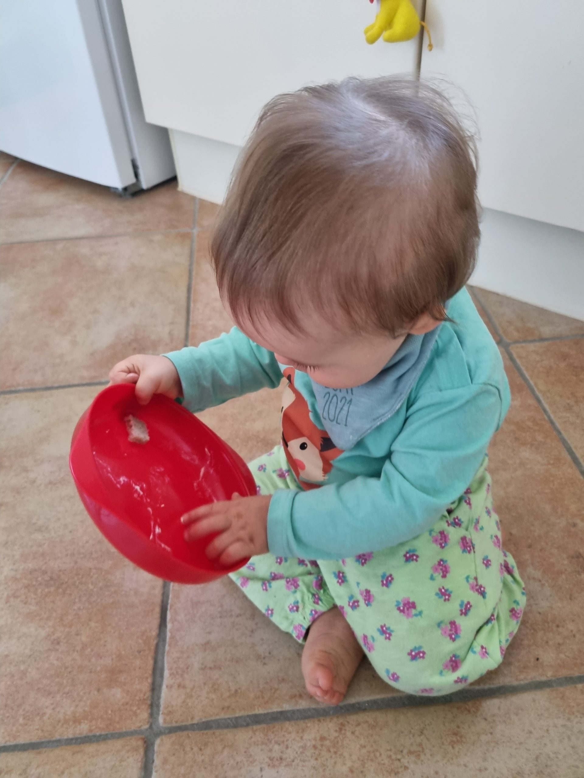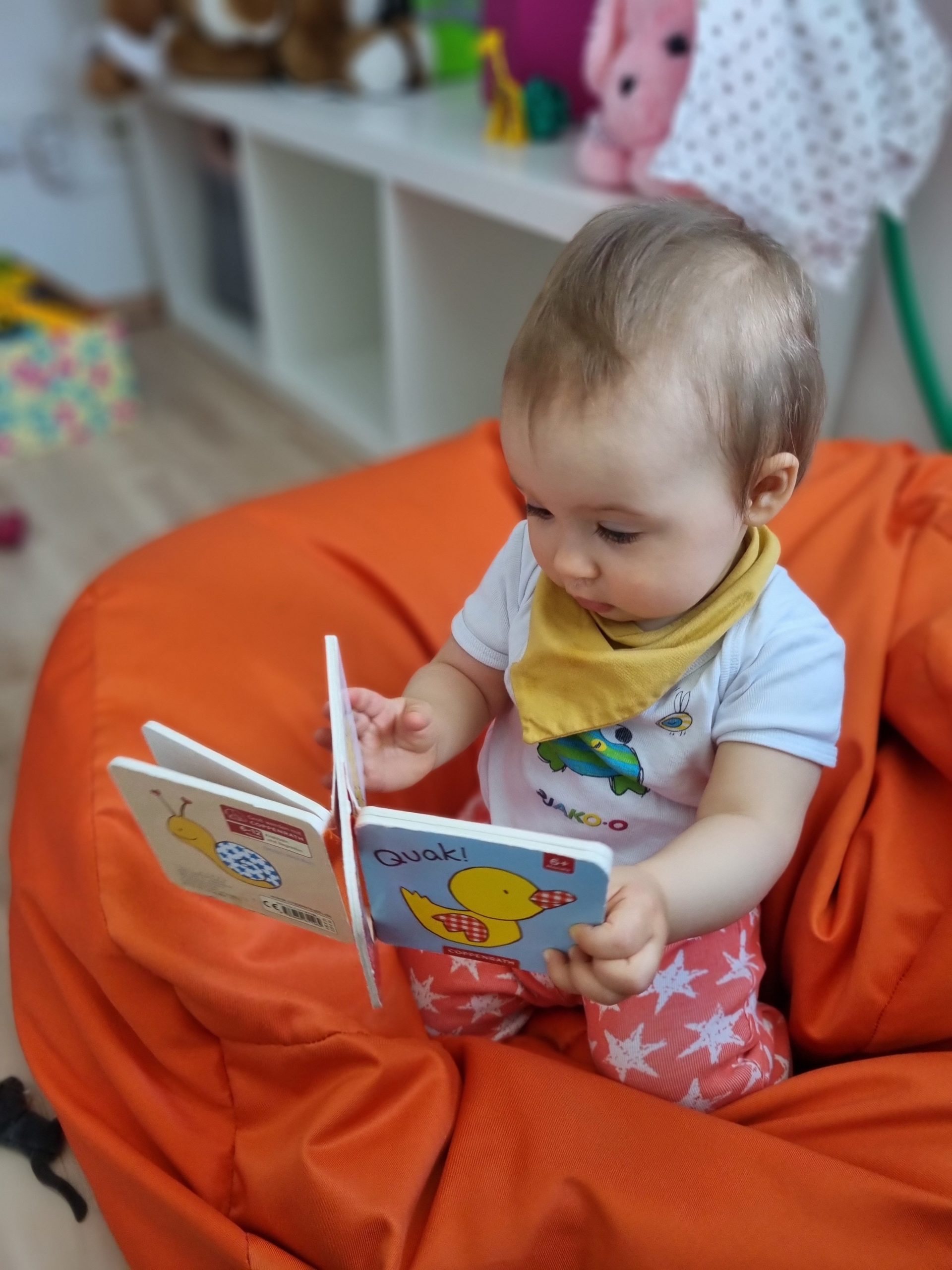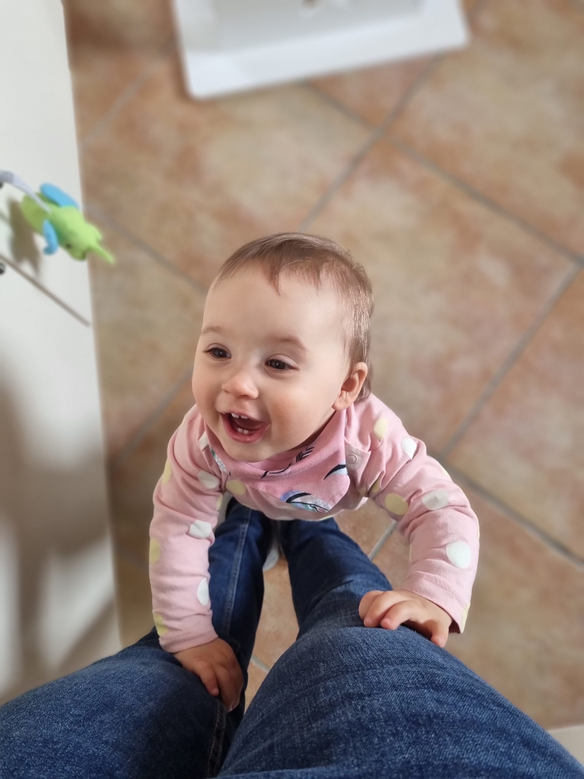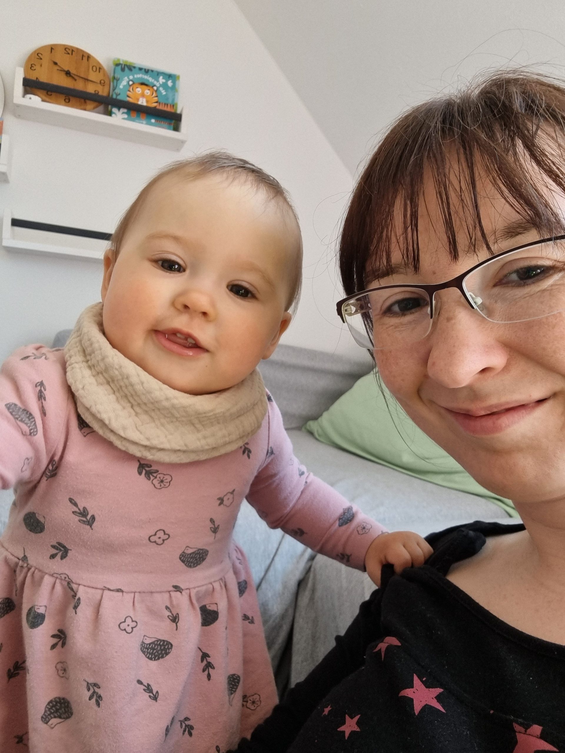 Weil ich nicht an mehreren Baustellen gleichzeitig arbeiten kann, ist mein Wortschatz weiterhin beschränkt auf „da“, „da-da“ und „Mama“. Aber meistens versteht meine Mama mich auch ohne Worte🥰