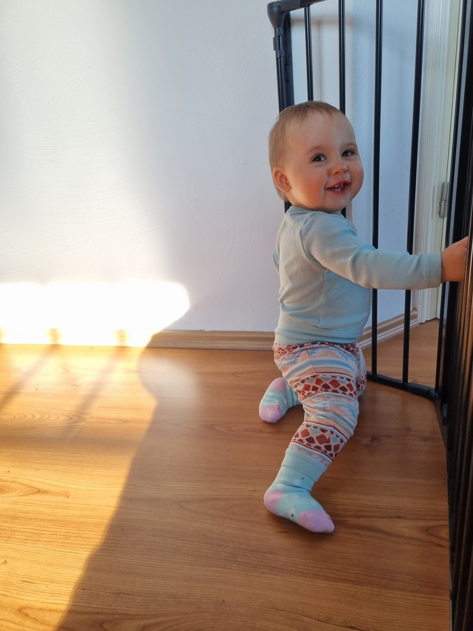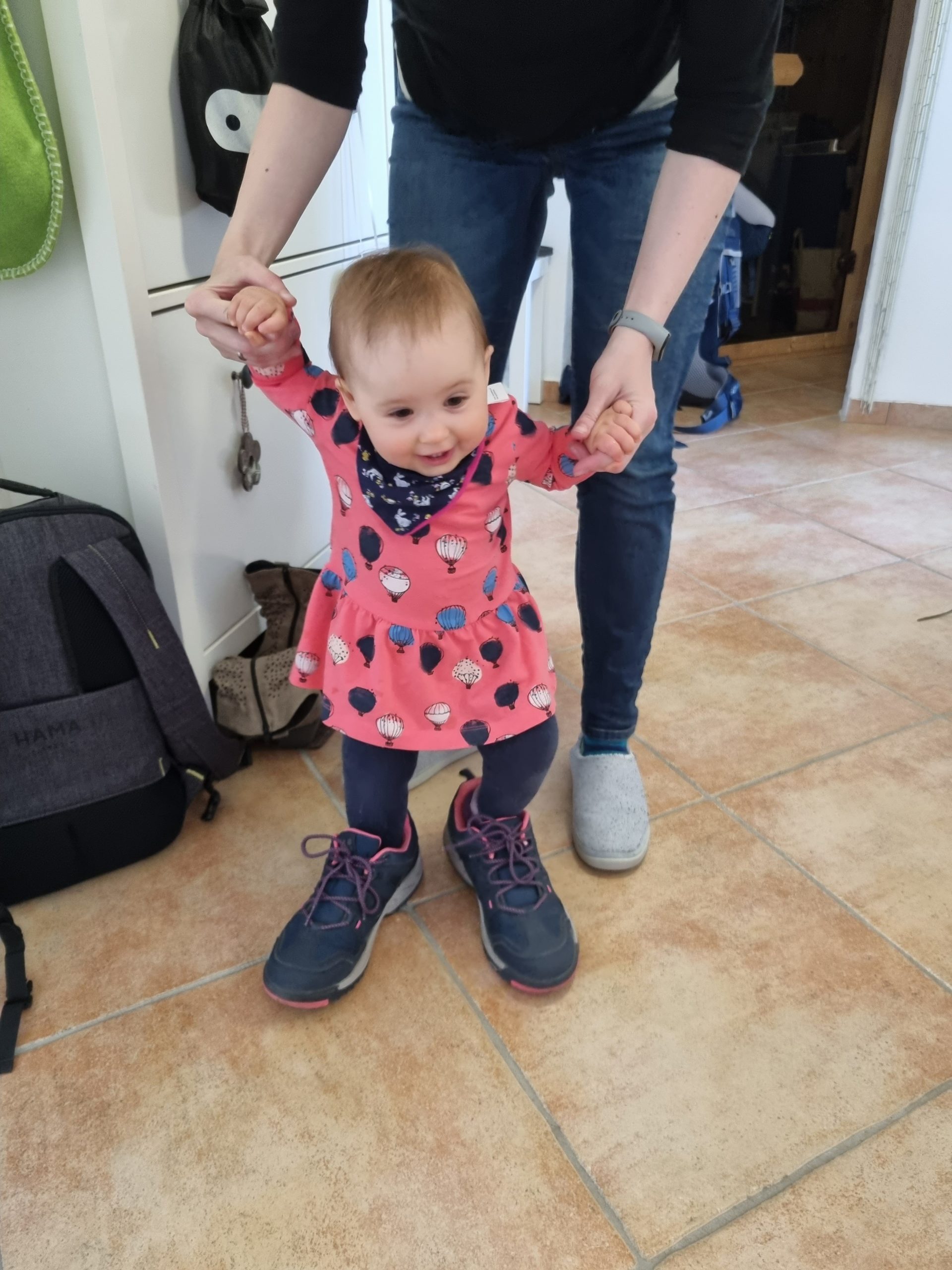 Letzte Woche habe ich meine allerersten, wackeligen Schritte alleine gemacht und heute kann ich nun schon richtig Strecke bewältigen und Mama & Papa quer durch die Wohnung jagen 💛