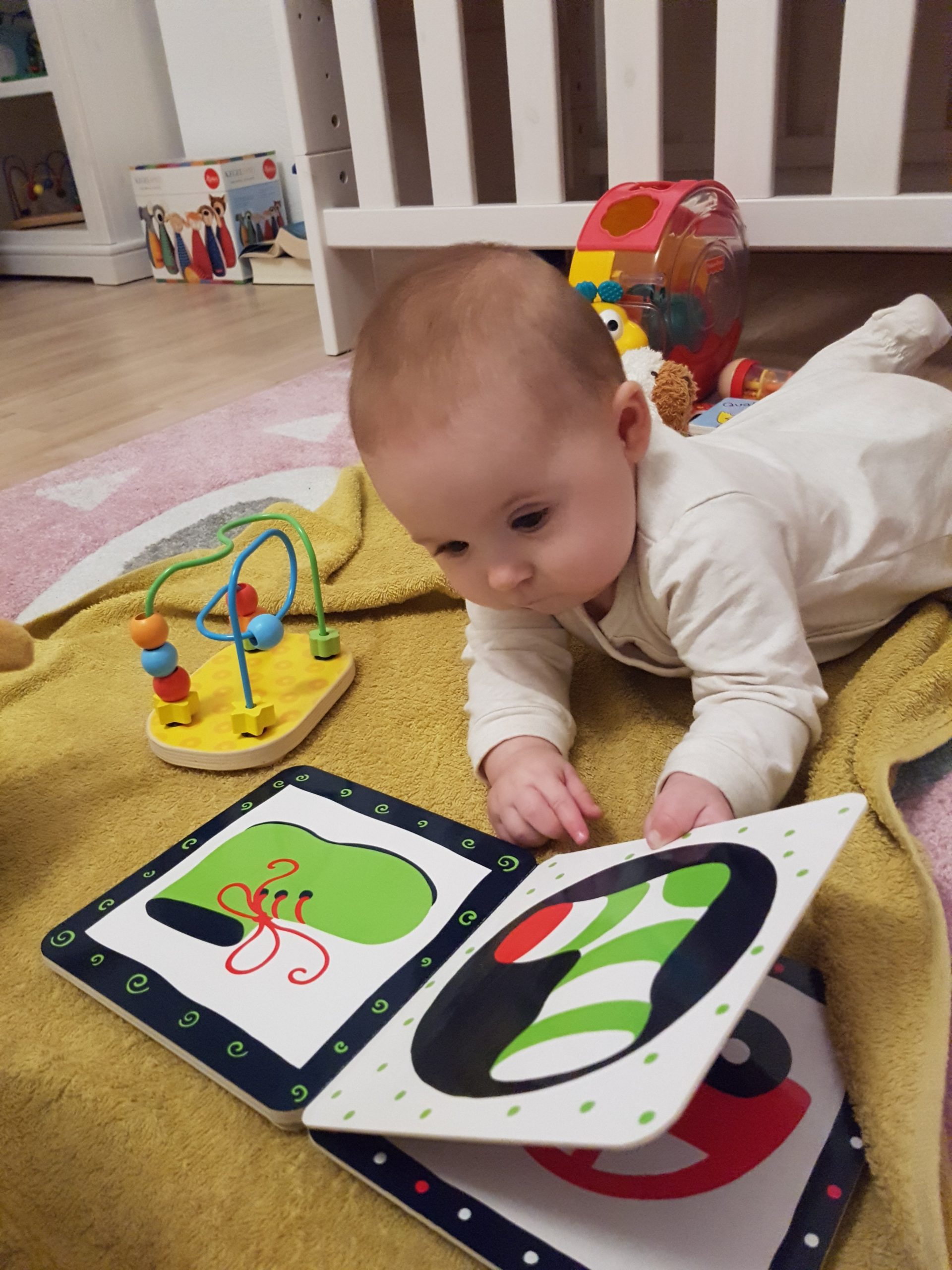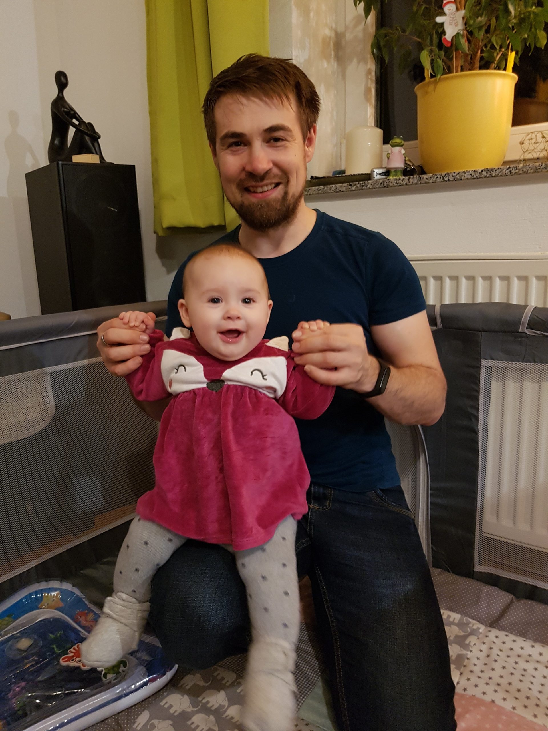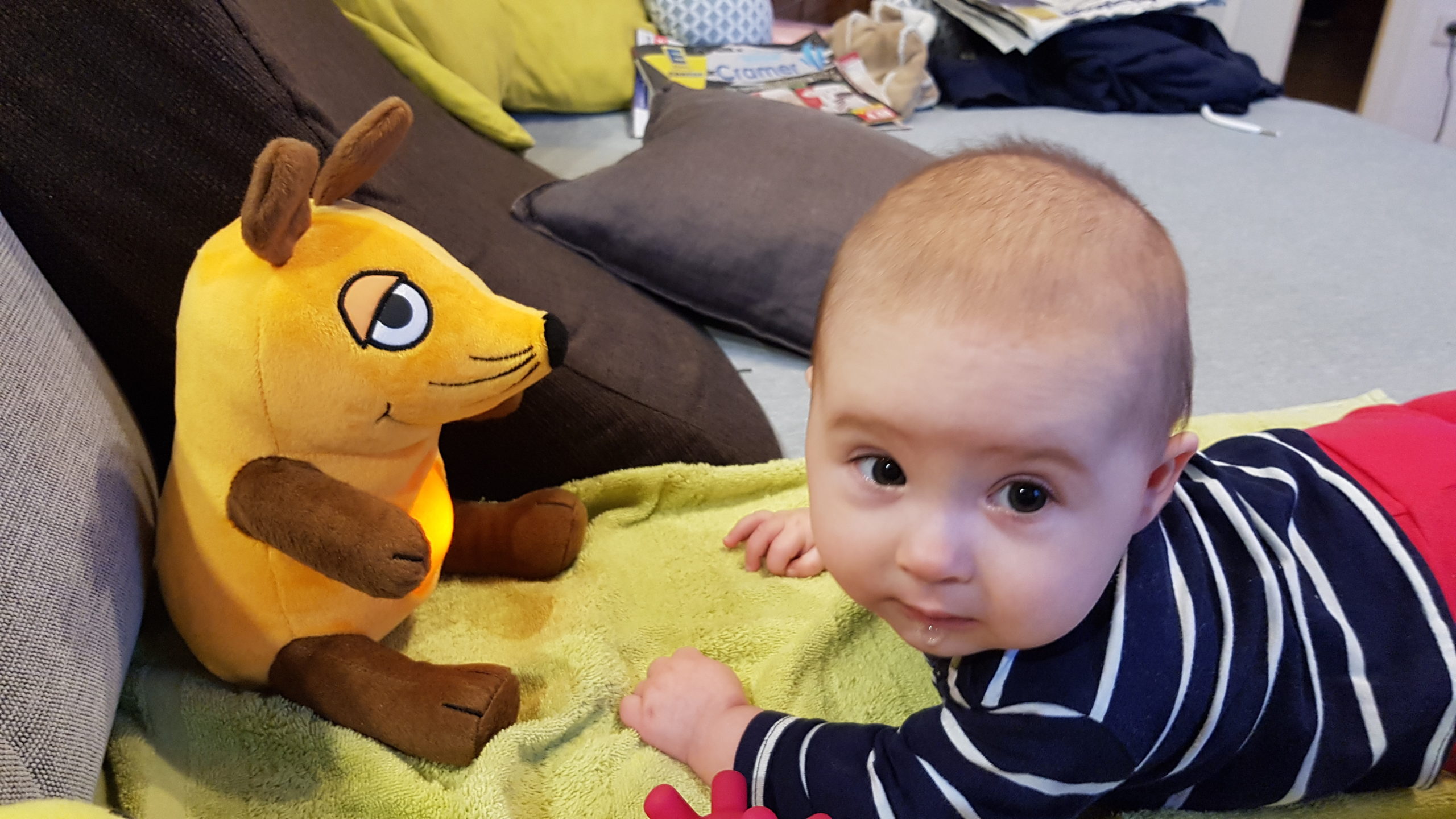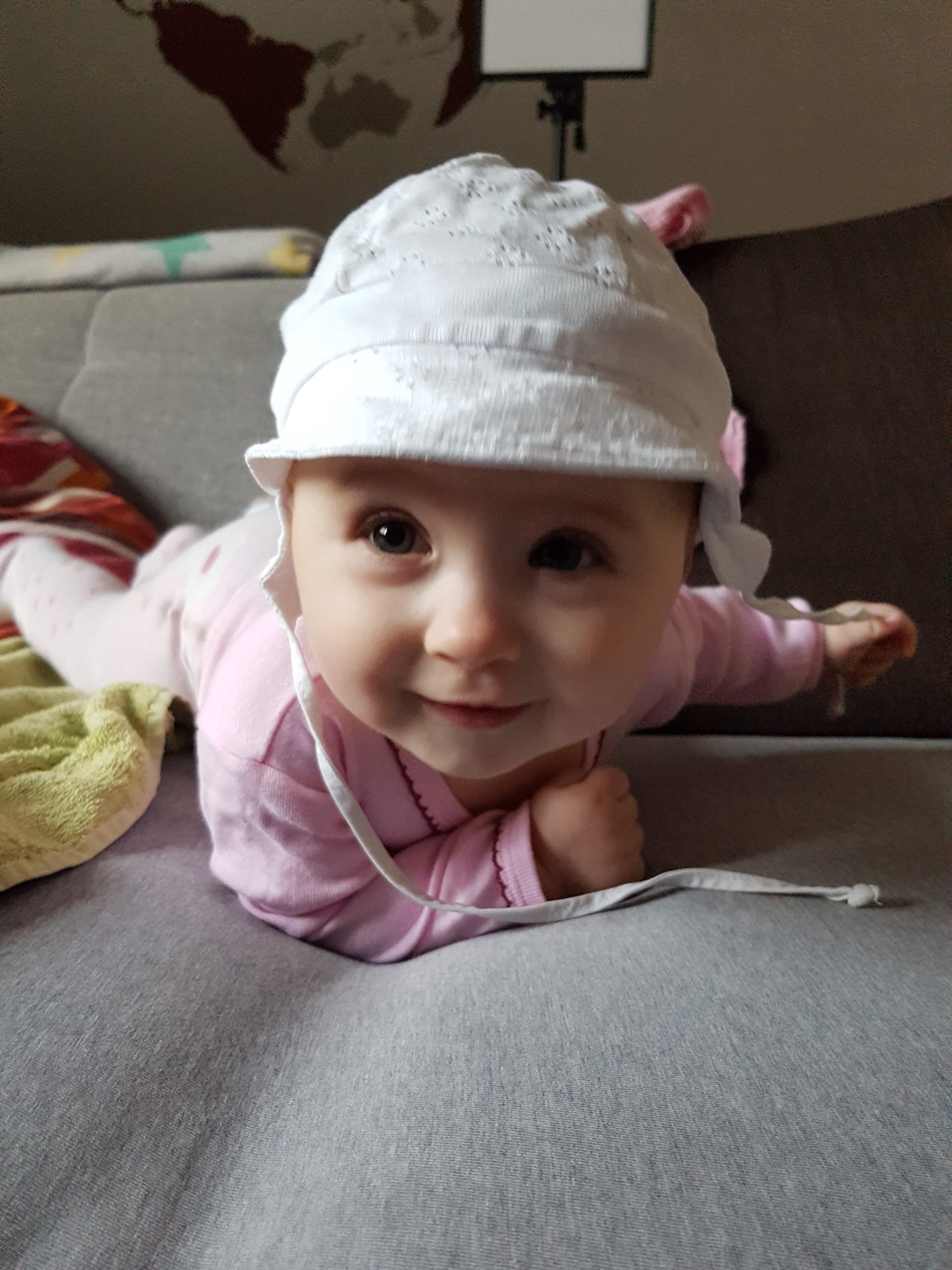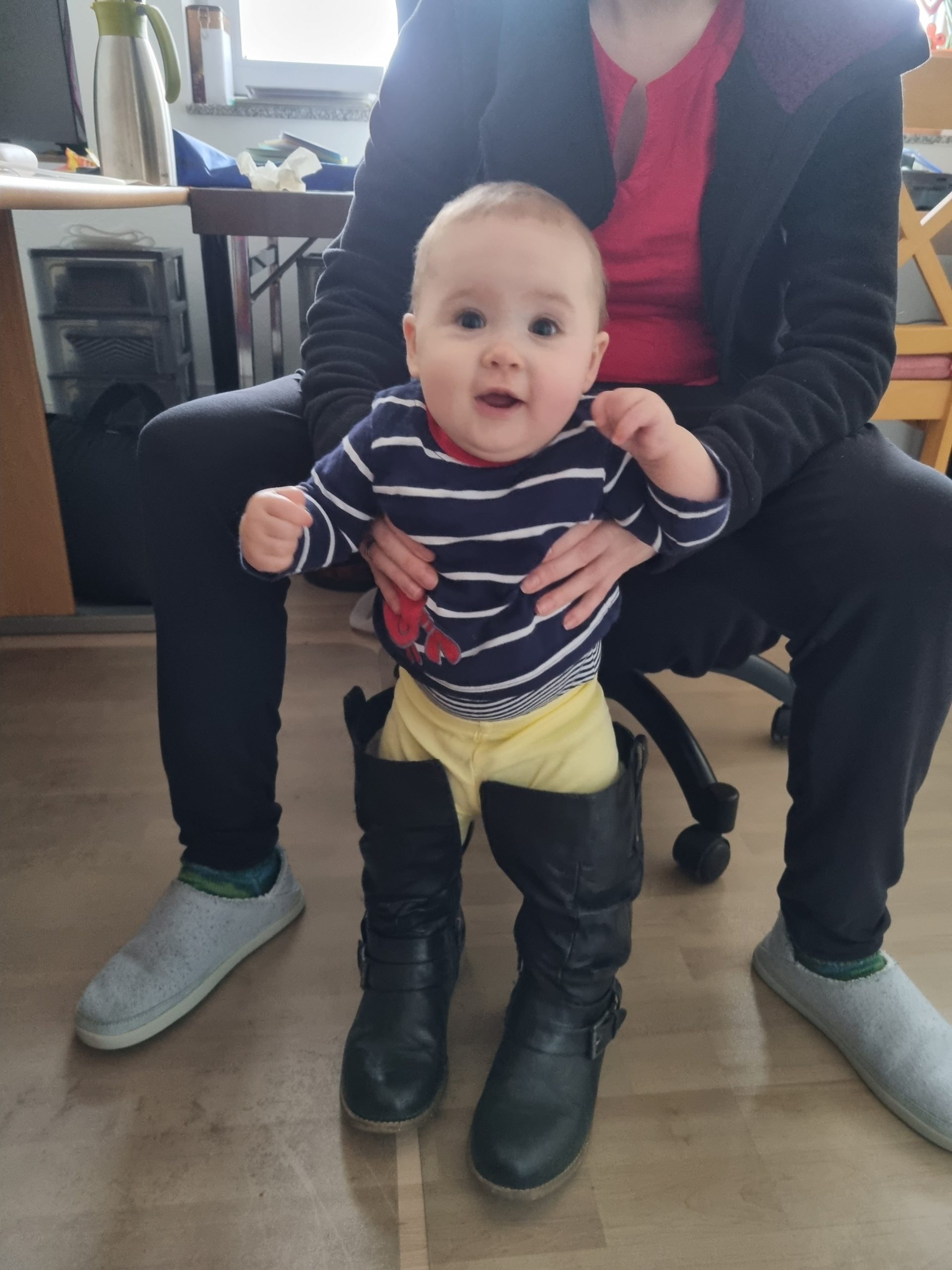 Aufsetzen kann ich mich inzwischen alleine, in den Vierfüßlerstand komme ich auch schon ohne Weiteres und es fehlt auch gar nicht mehr viel zum Robben. Dann geht es richtig ab!