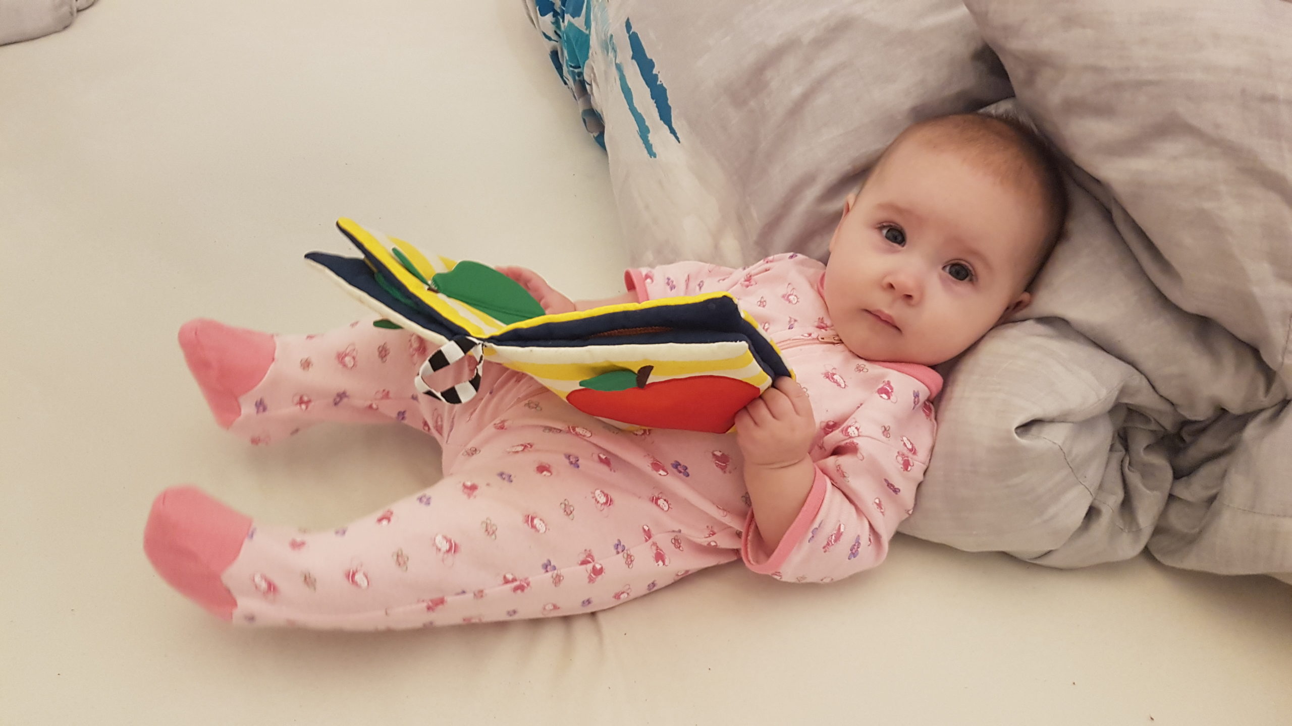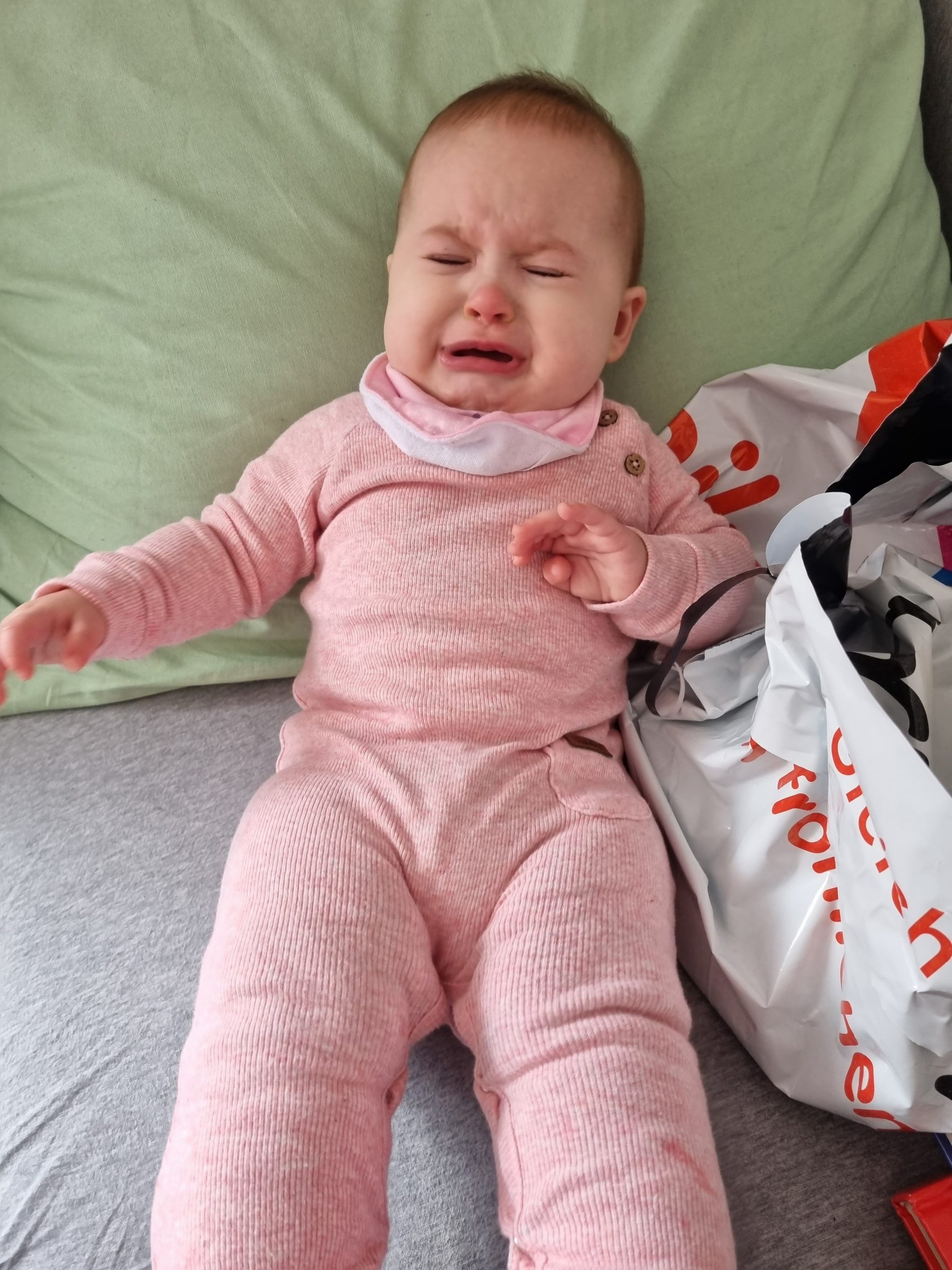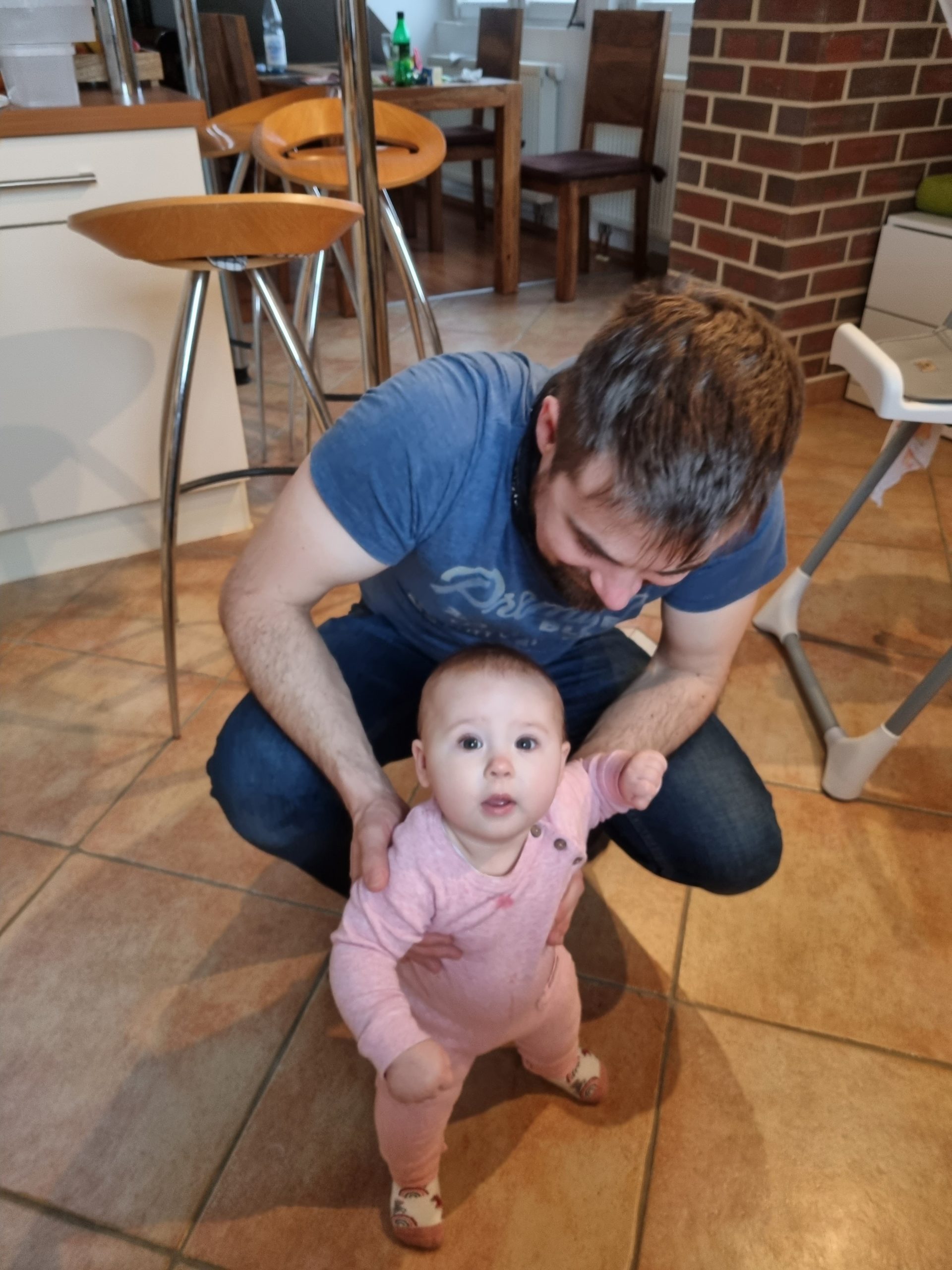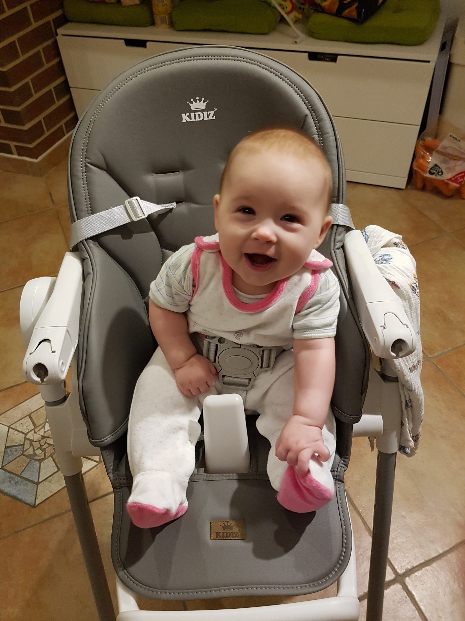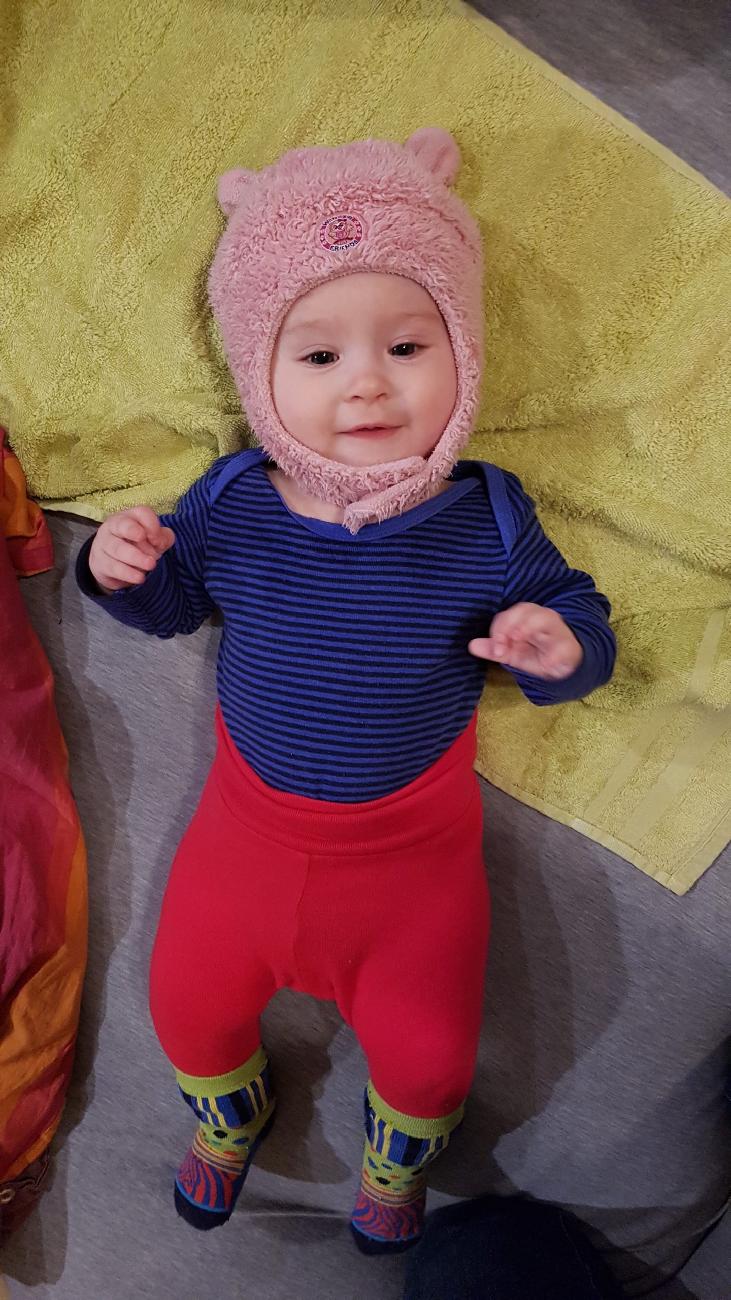 Aufsetzen kann ich mich inzwischen alleine, in den Vierfüßlerstand komme ich auch schon ohne Weiteres und es fehlt auch gar nicht mehr viel zum Robben. Dann geht es richtig ab!