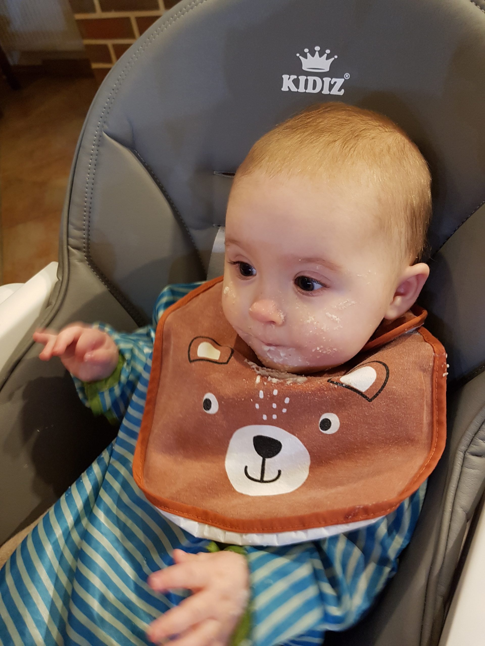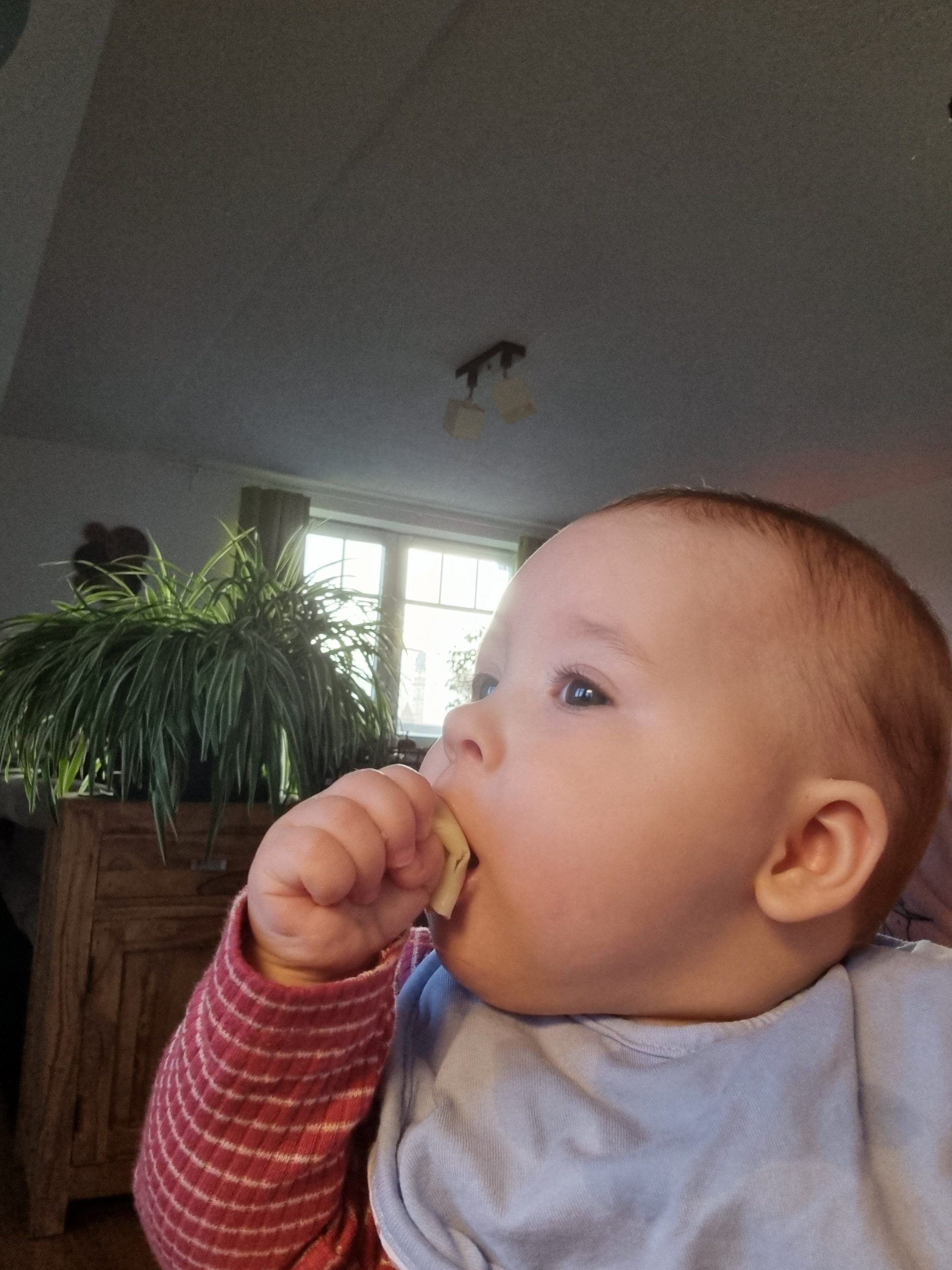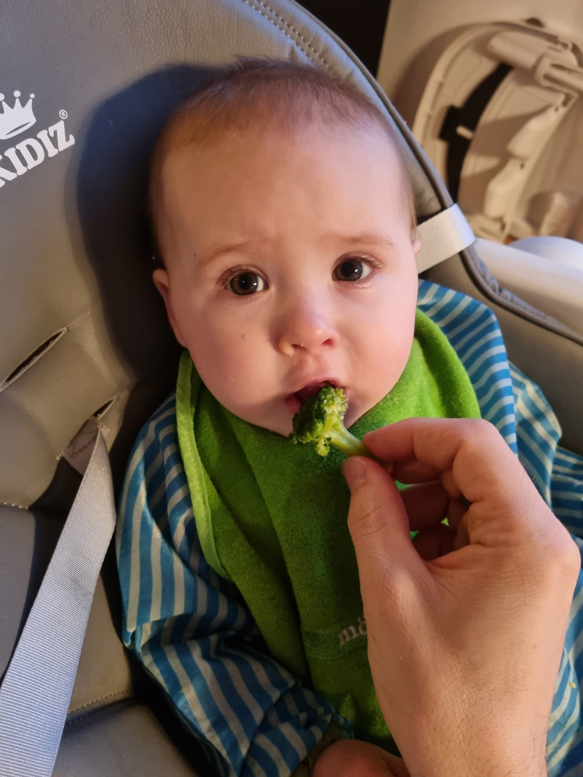 Zusätzlich zum Mittagsbrei bekomme ich nun auch einen Abendbrei, den ich meistens ziemlich lecker finde. Außerdem probiere ich mich fleißig durch Mama und Papas Kühlschrank. Paprika finde ich toll und Käse hat eine interessante Konsistenz. Aber Brokkoli ist noch nicht so mein Fall 🥦