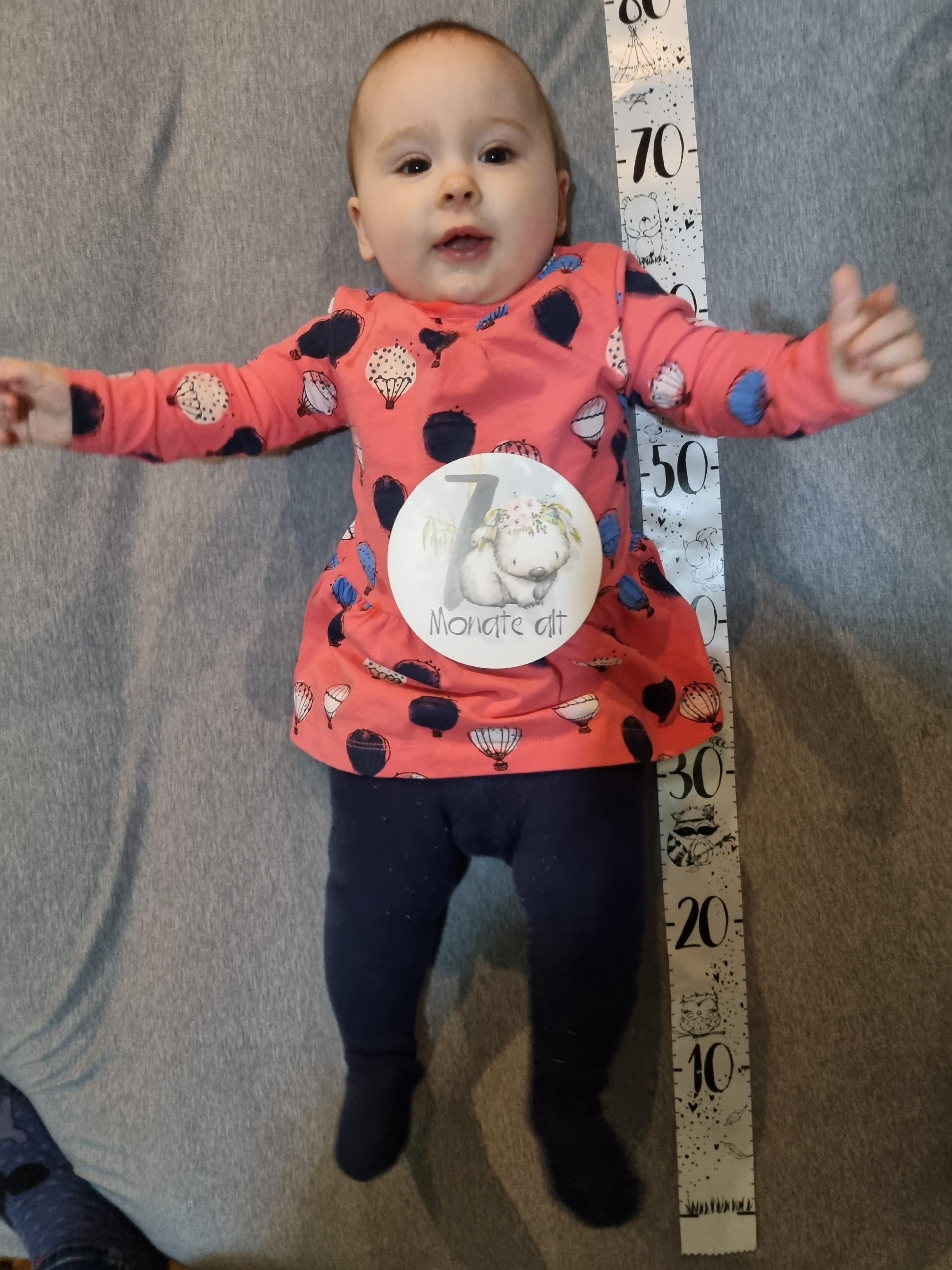 Mit sieben Monaten bin ich nun schon ca. 72 cm groß und wiege 8200 g.