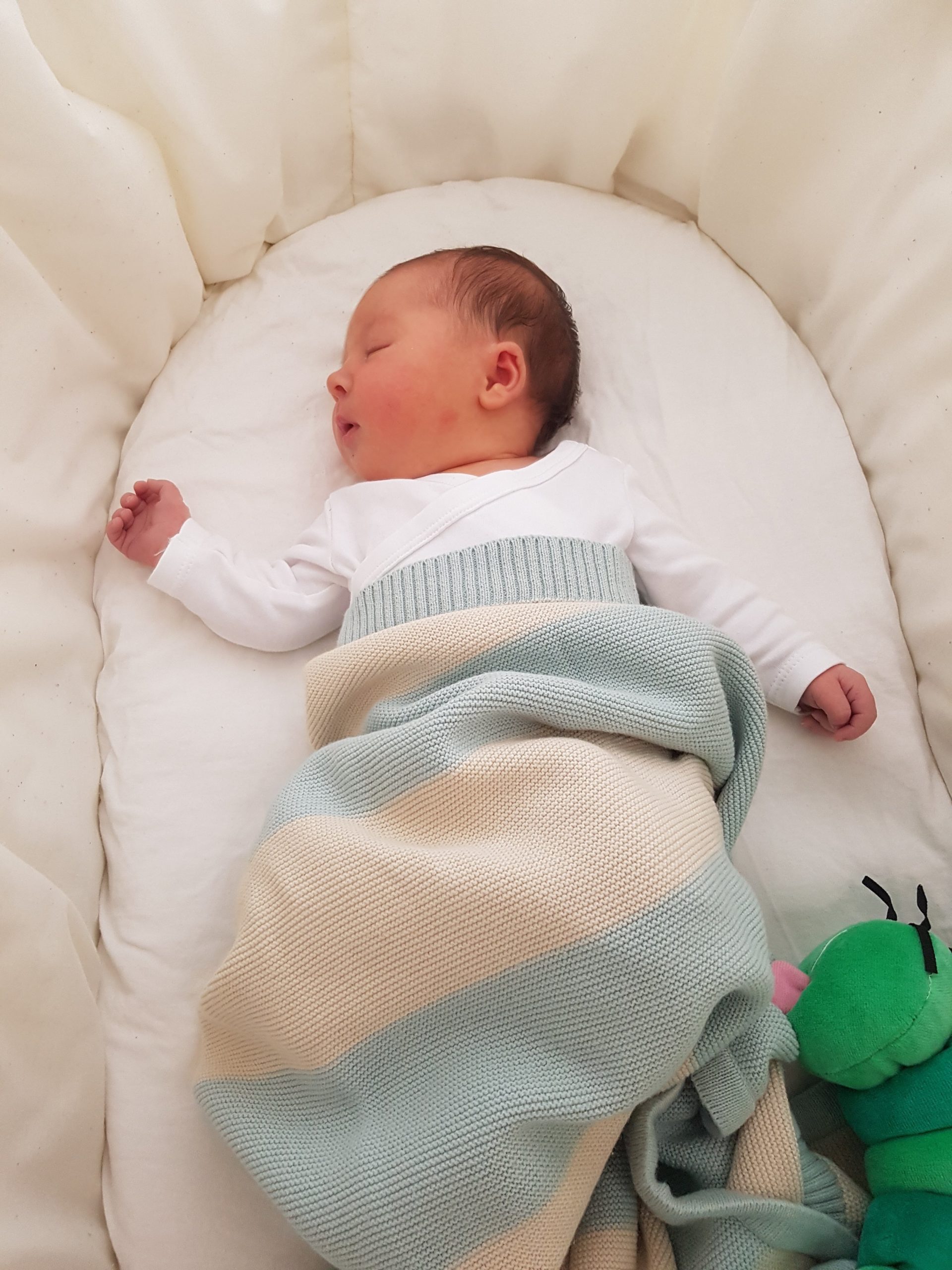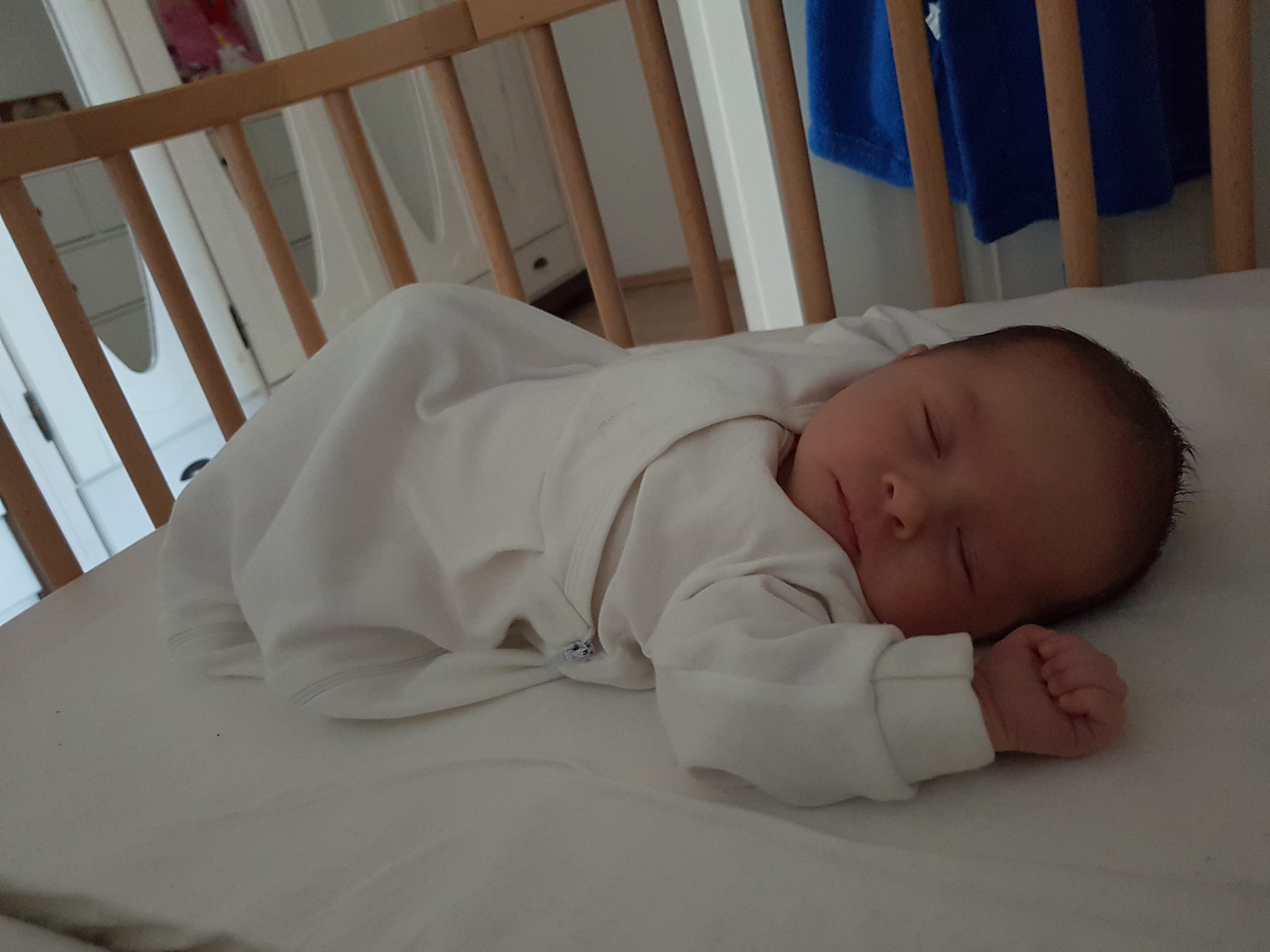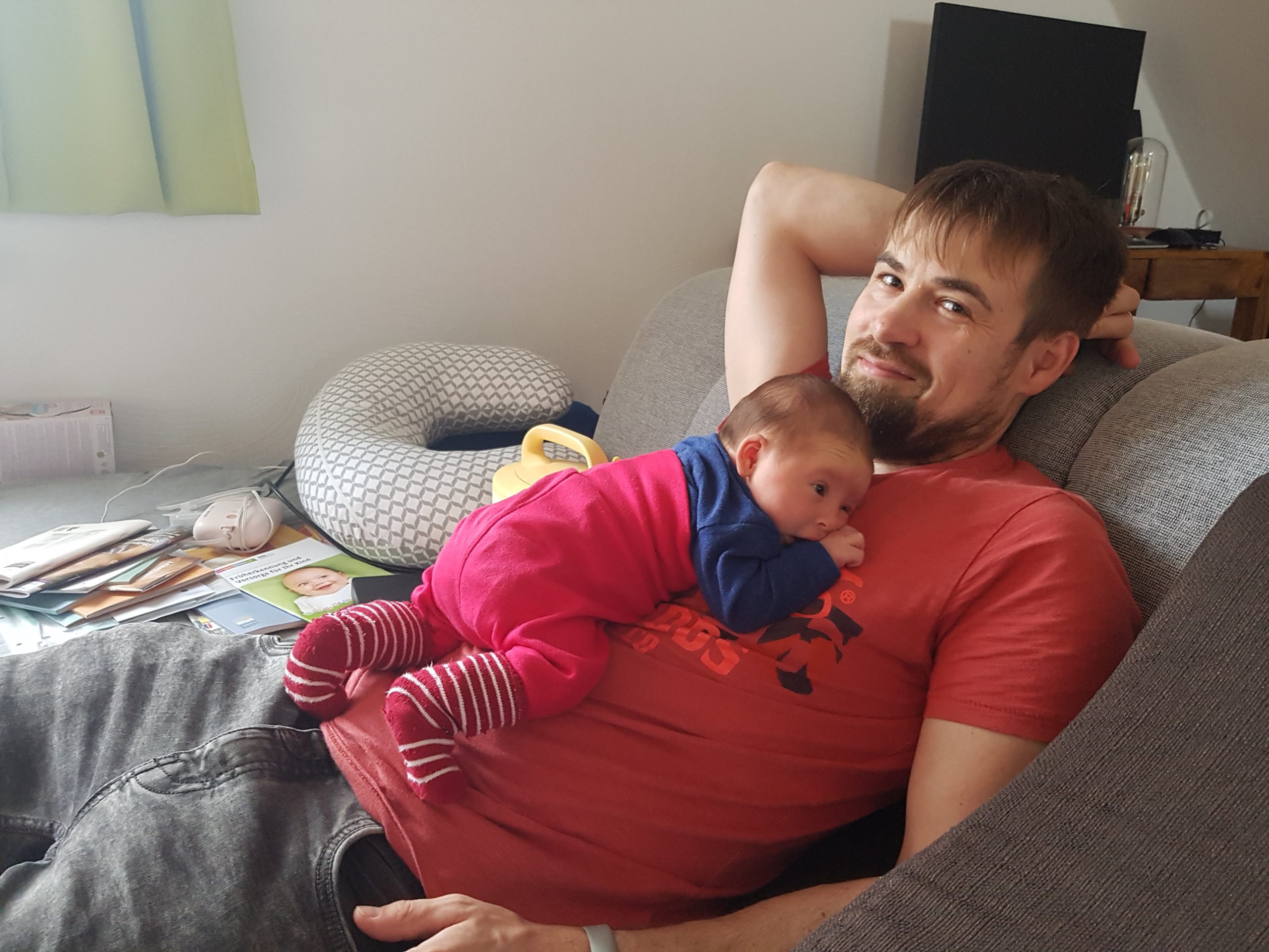 Also, Bettchen und Stubenwagen sind schon ganz okay, – aber am Liebsten schlafe ich auf Papas Brust! ♡