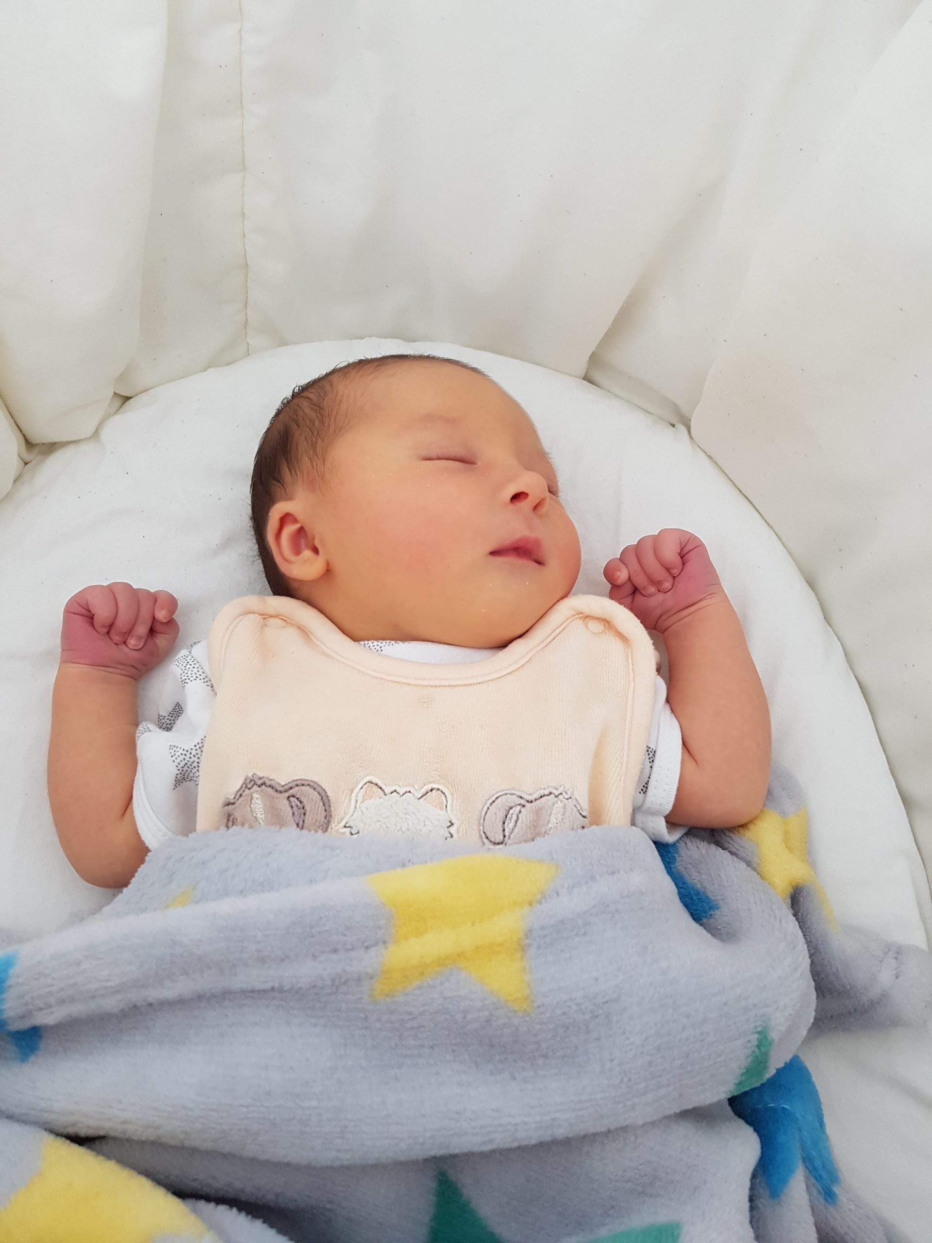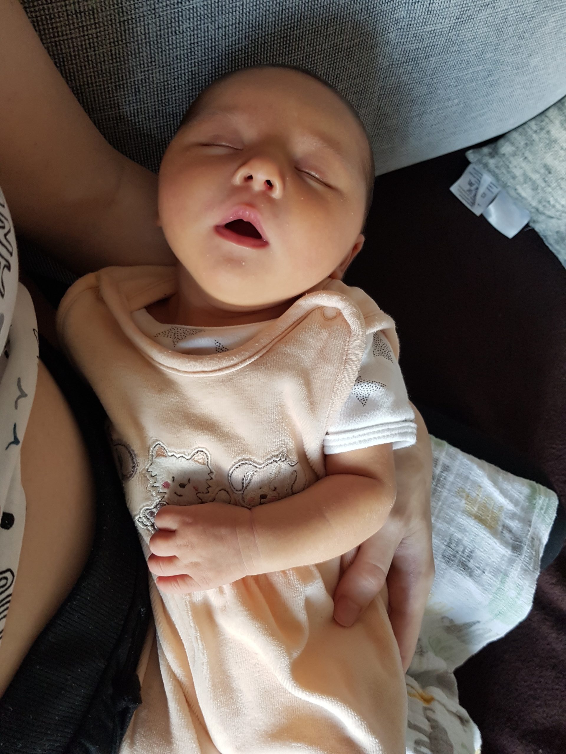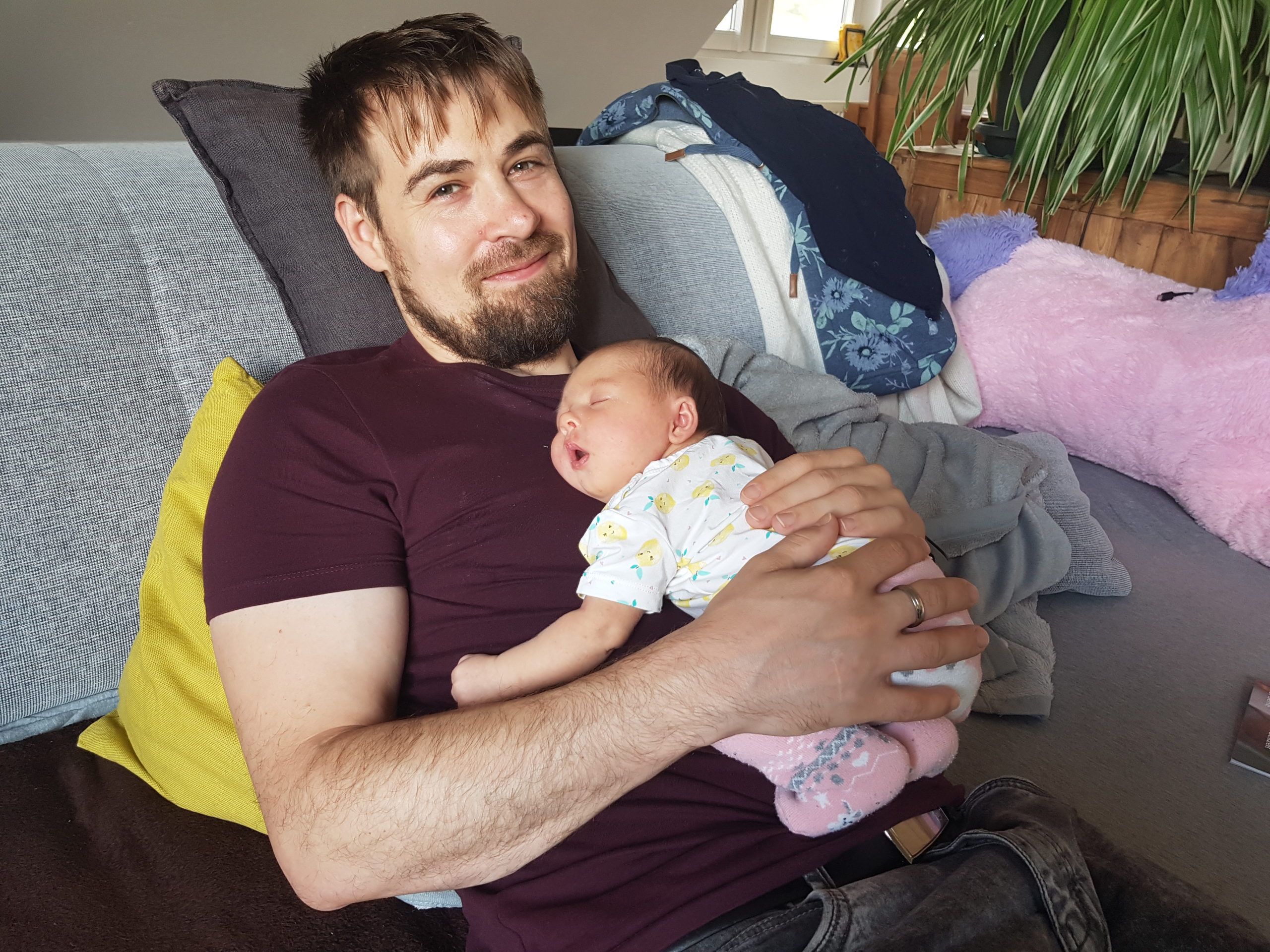 Also, Bettchen und Stubenwagen sind schon ganz okay, – aber am Liebsten schlafe ich auf Papas Brust! ♡