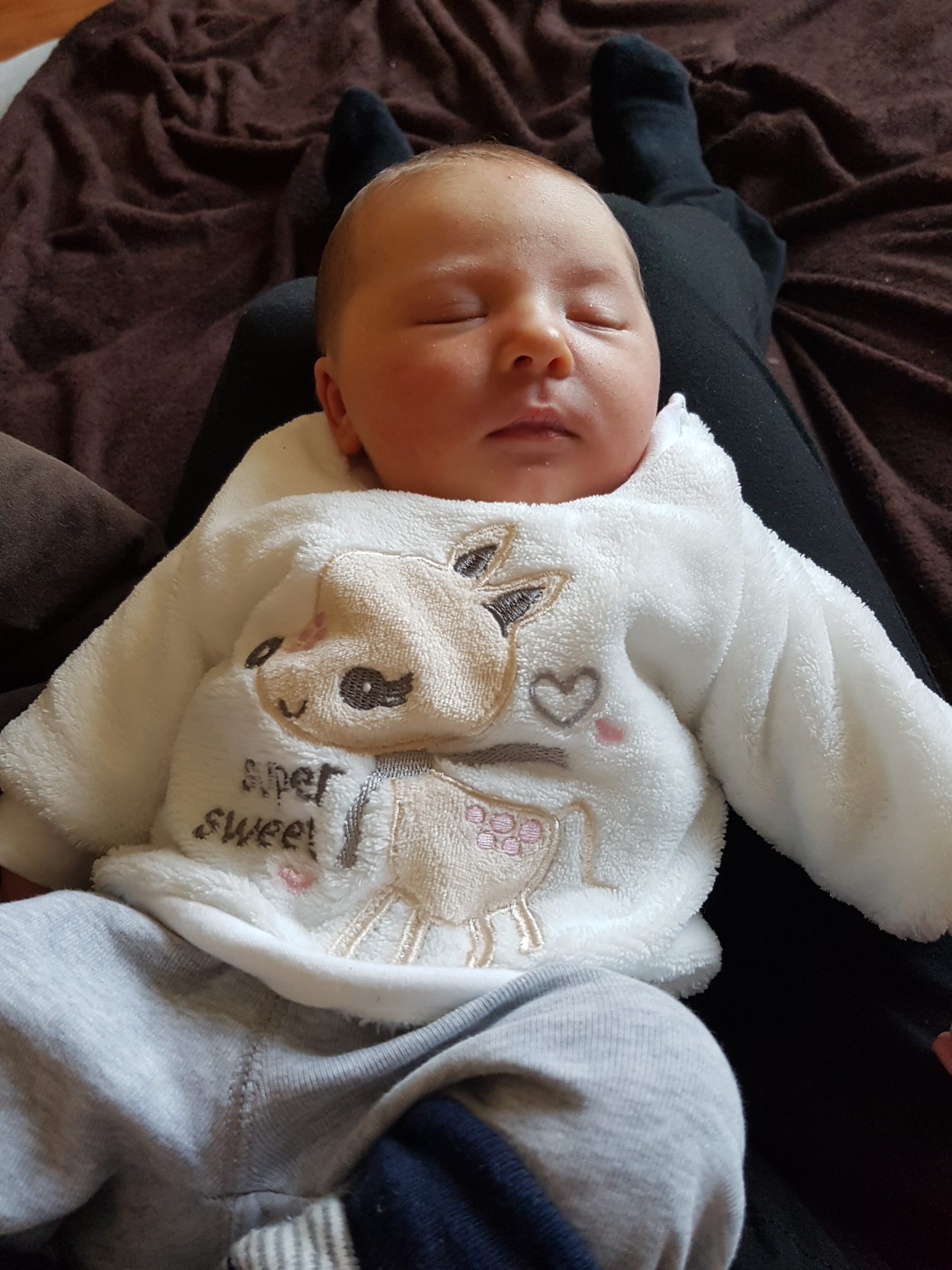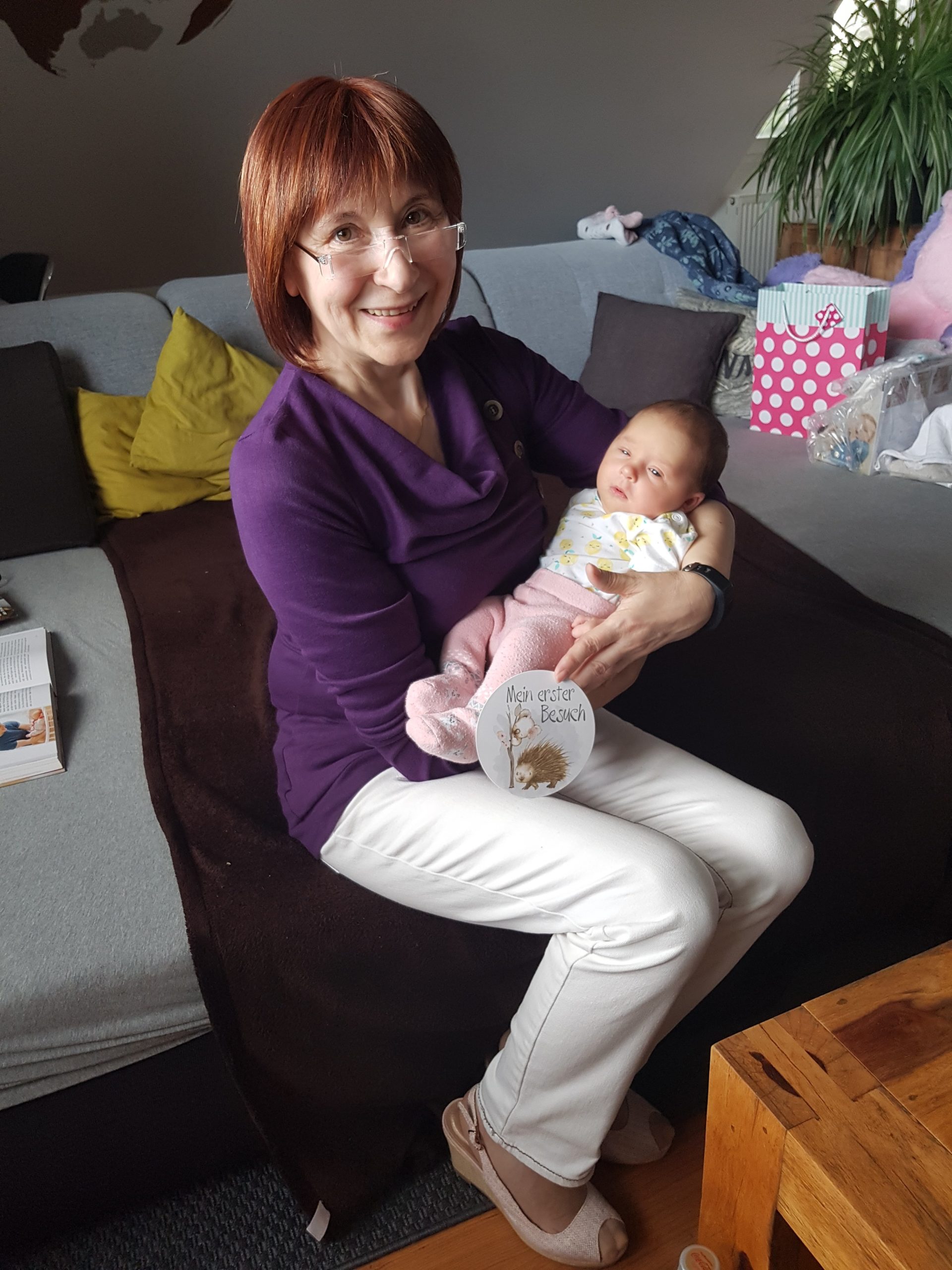 Heute hatte ich meinen ersten Besuch und habe Oma Emi und Opa Bernd kennen gelernt. Das war sehr aufregend und ich habe viele tolle Sachen geschenkt bekommen. Ich freue mich schon darauf bald den Rest meiner Familie zu treffen!
