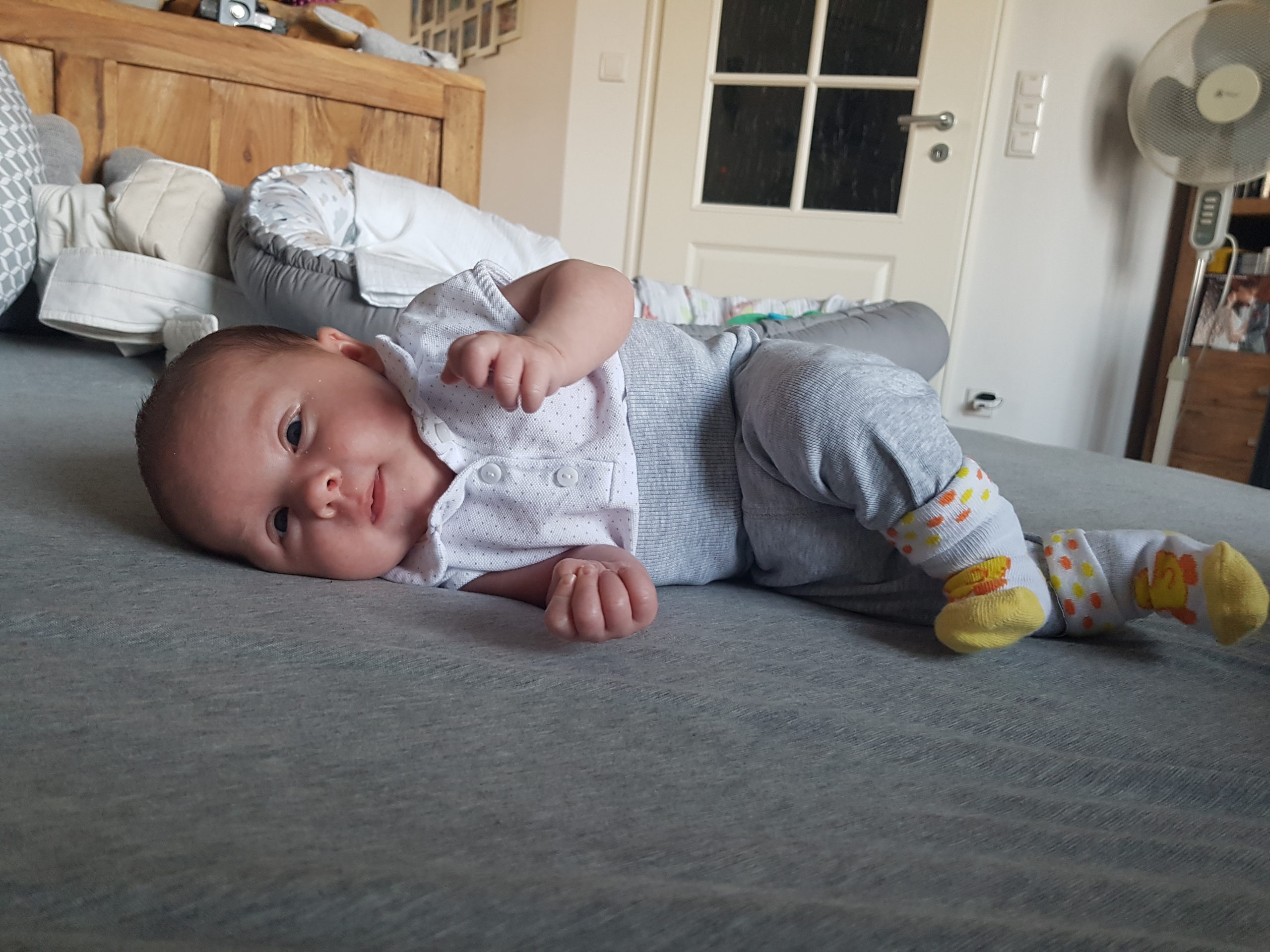 Heute wurde ich beim Kinderarzt vermessen, gewogen und geschallt. Weil mir das überhaupt nicht gefallen hat, habe ich durchgehend gebrüllt. Später schreibe ich noch eine miese Google-Bewertung.