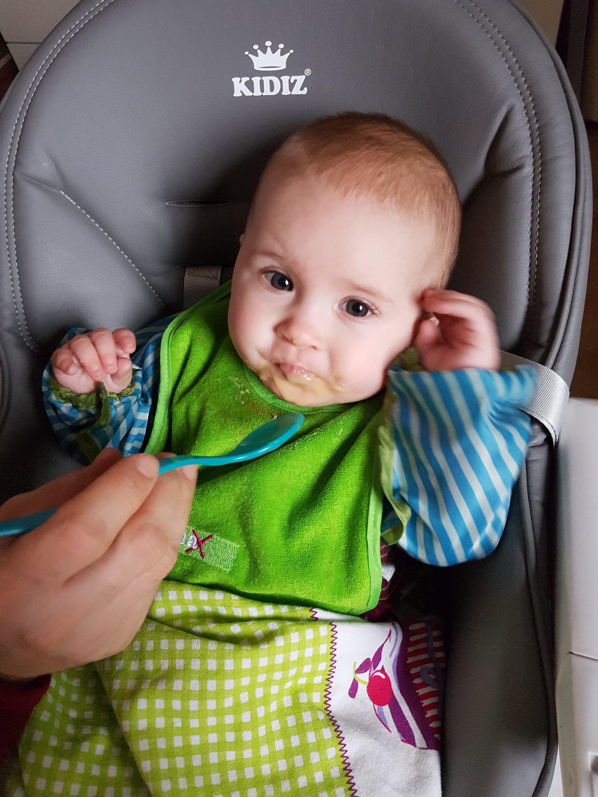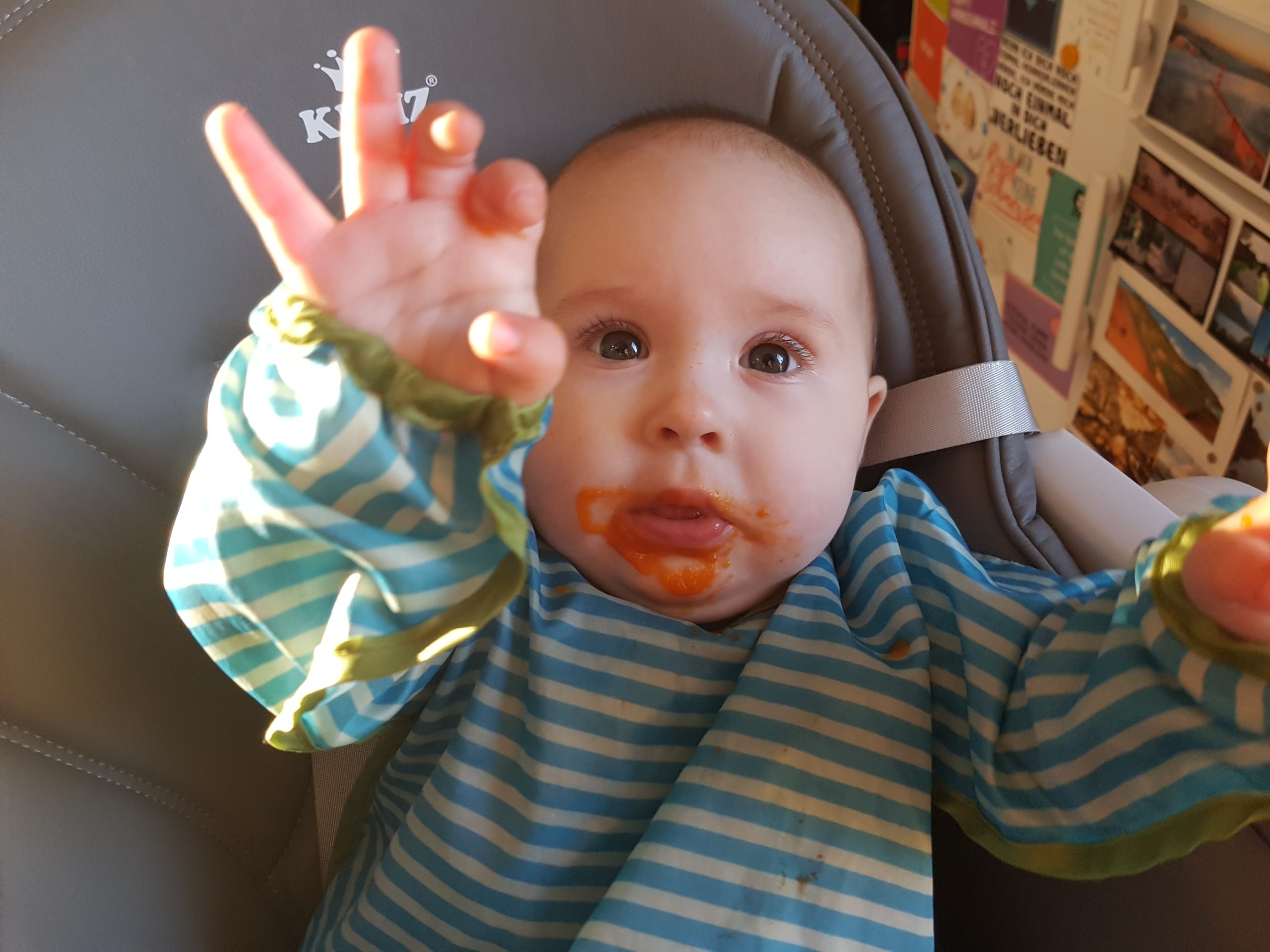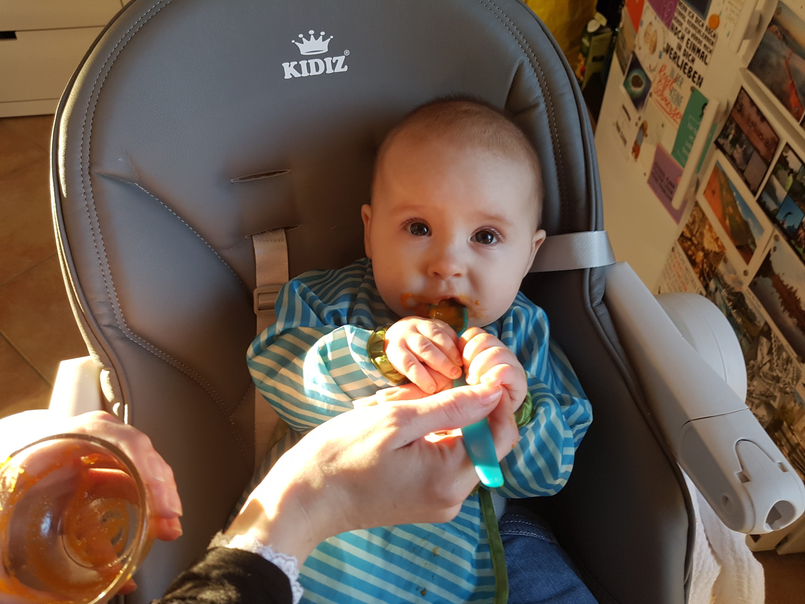 Seit ein paar Tagen bekomme ich immer diese lustigen Breie. Die schmecken ganz anders als Milch. Manche mag ich, bei anderen verziehe ich mein Gesicht und mag sie später dann doch.