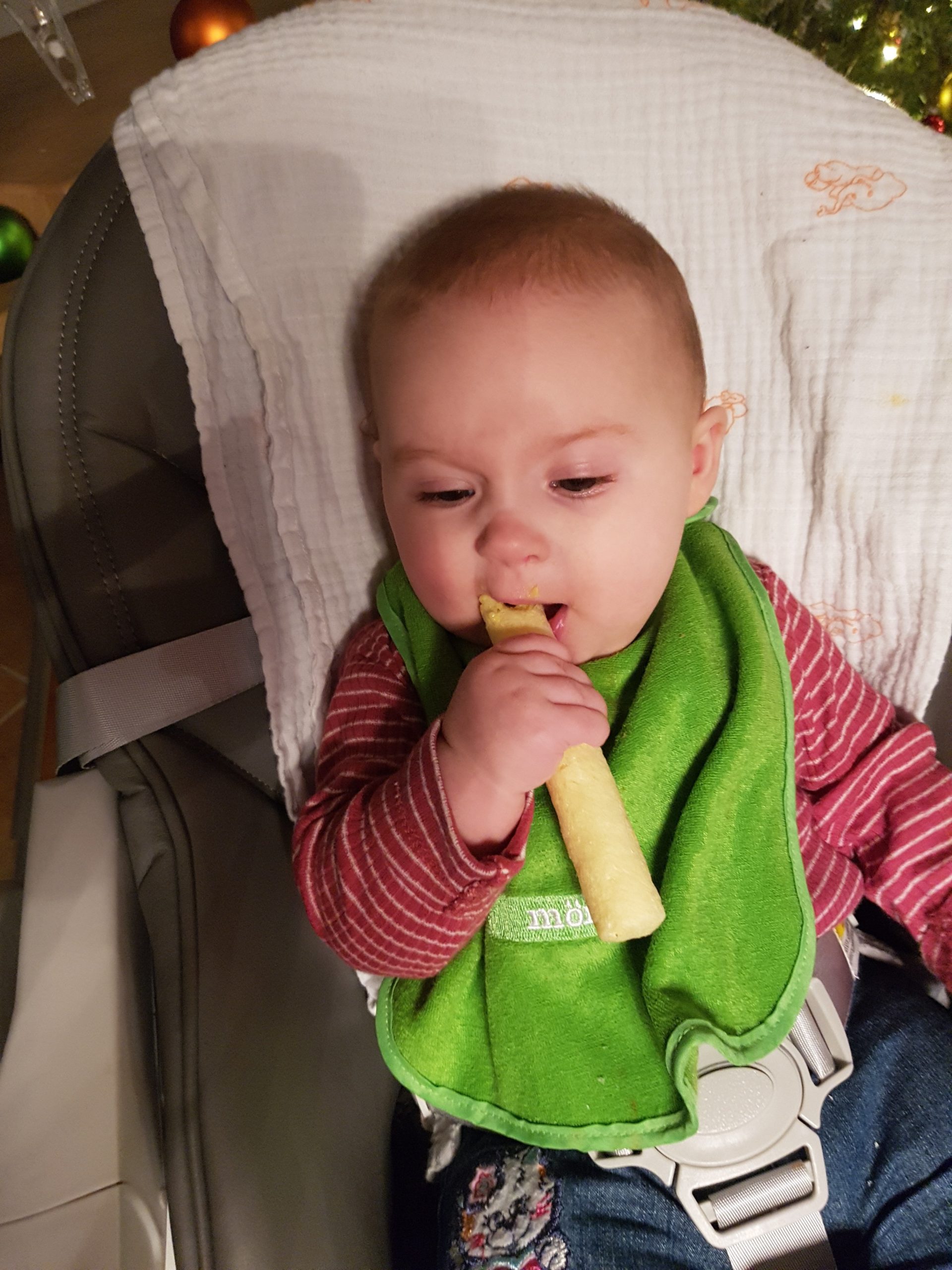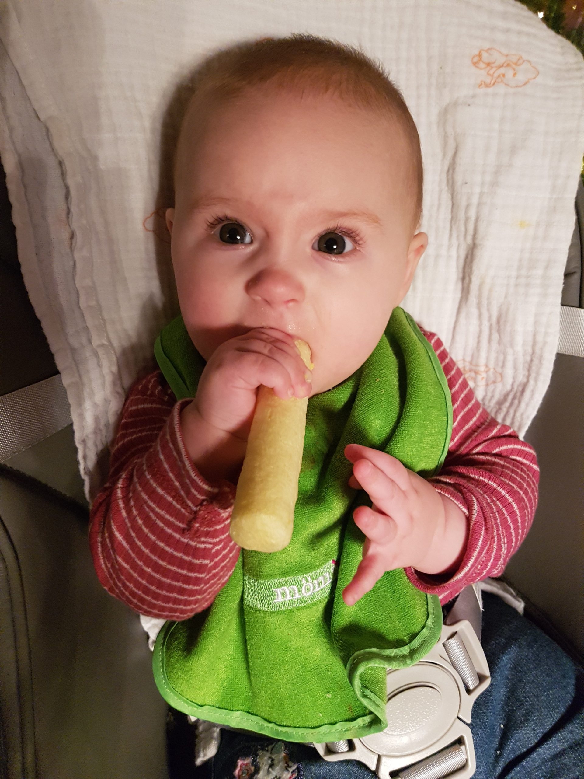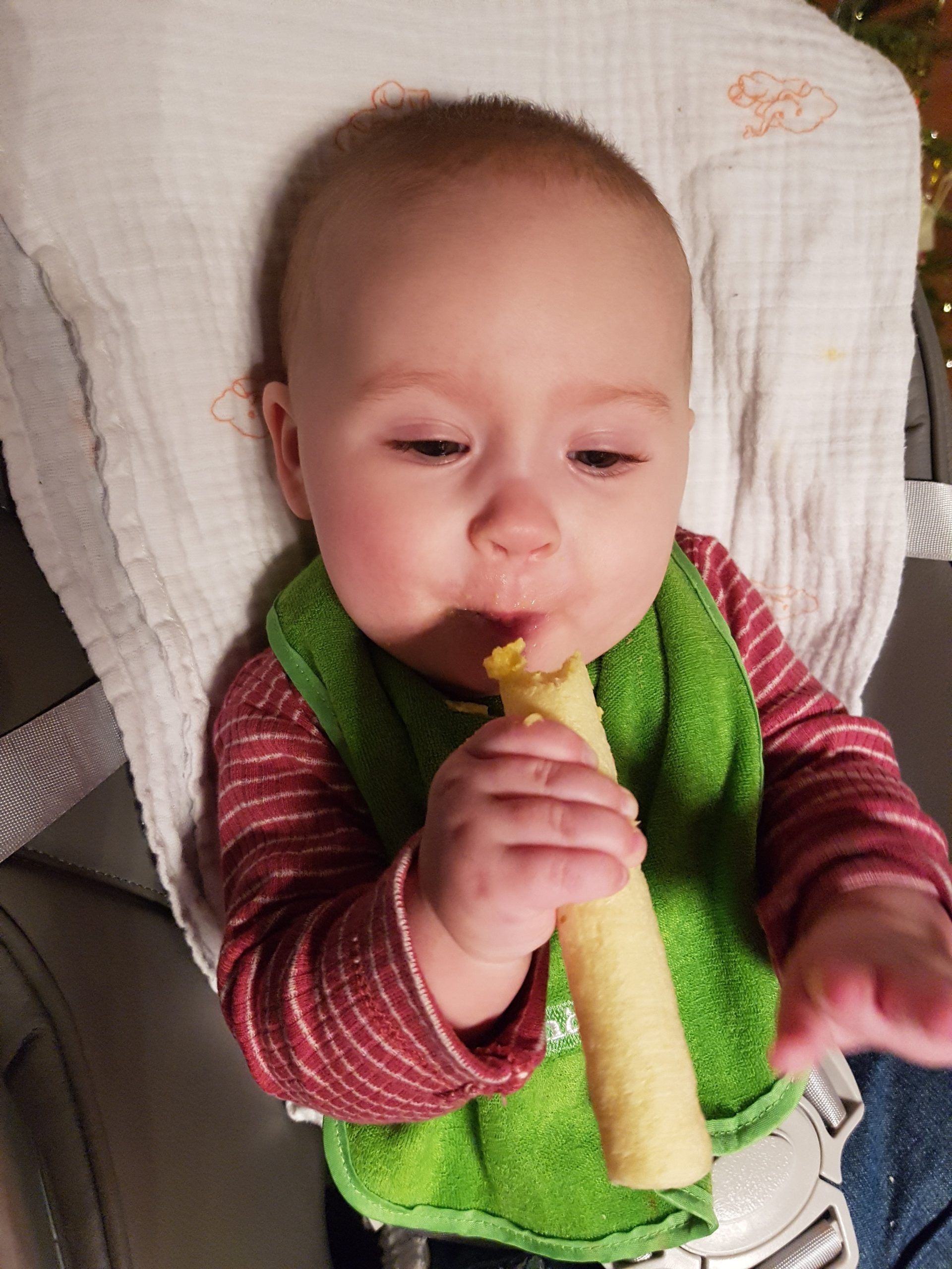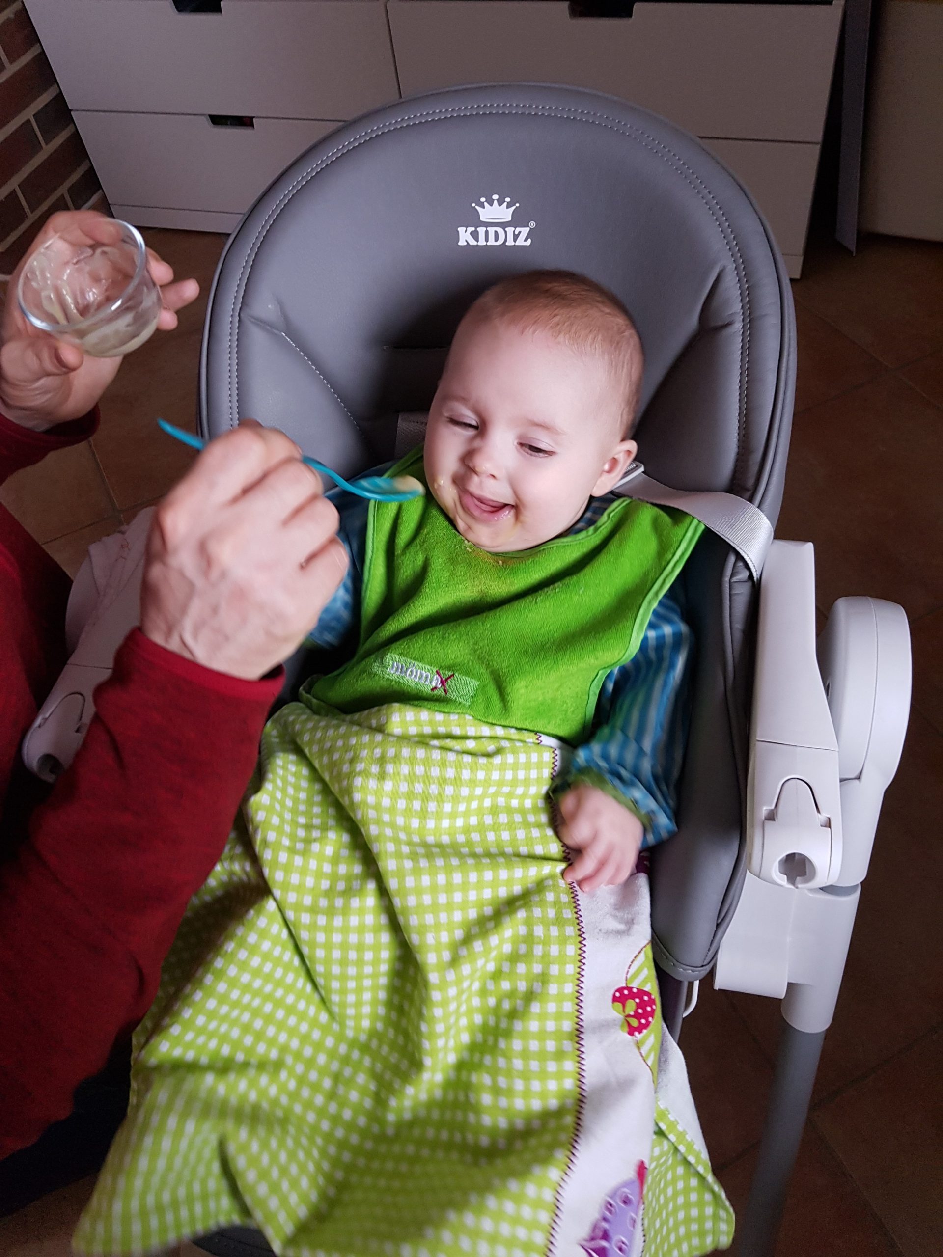 Seit ein paar Tagen bekomme ich immer diese lustigen Breie. Die schmecken ganz anders als Milch. Manche mag ich, bei anderen verziehe ich mein Gesicht und mag sie später dann doch.