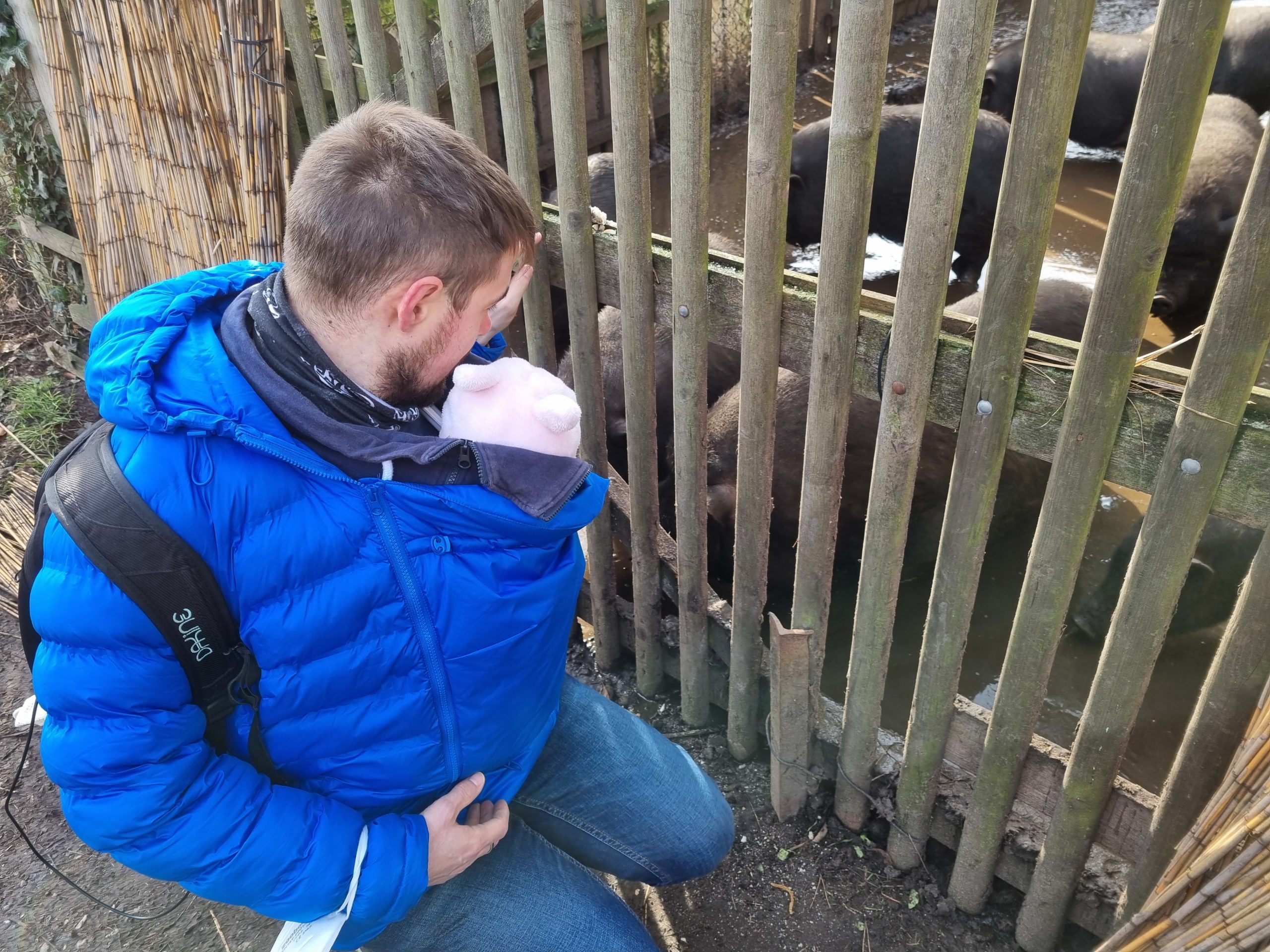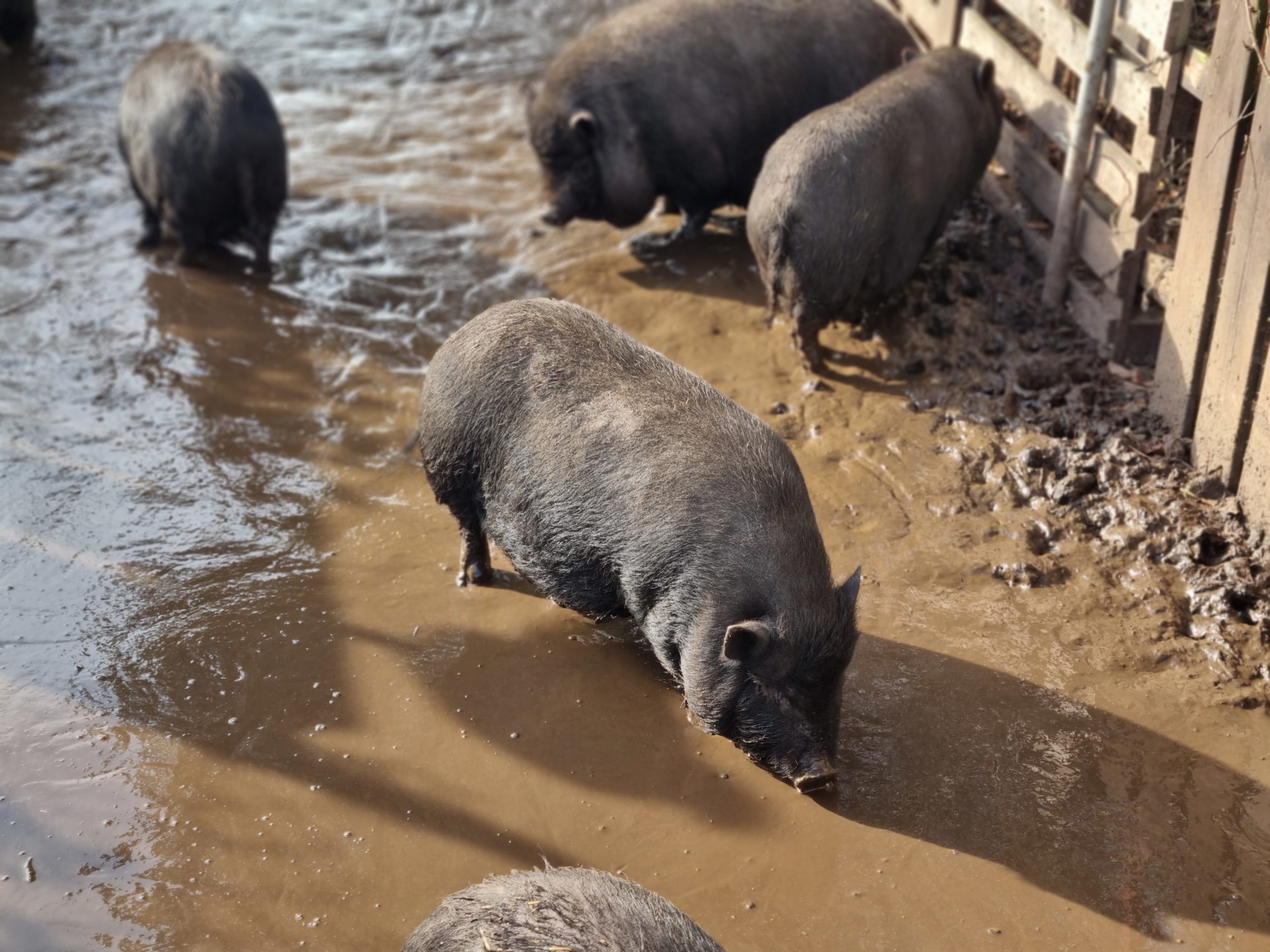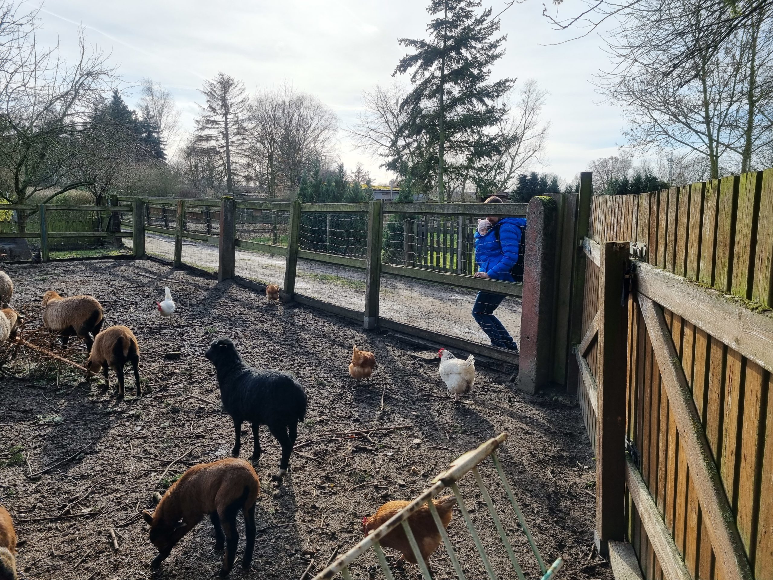 Bei dem schönen Wetter haben wir heute einen Ausflug zu den Schafen und Schweinen gemacht.
